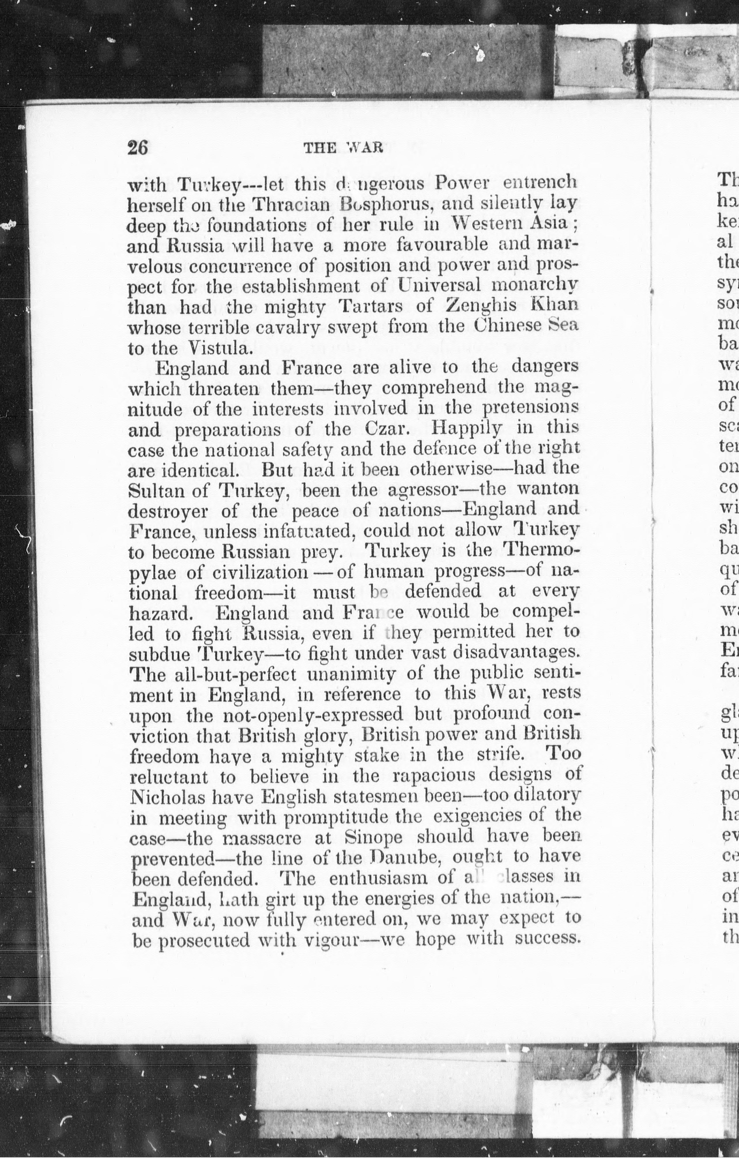 - The war in the East, the principals in the strife and its probable issue : a lecture delivered in Charlottetown, April 28, 1854, before the Mutual Improvement Association