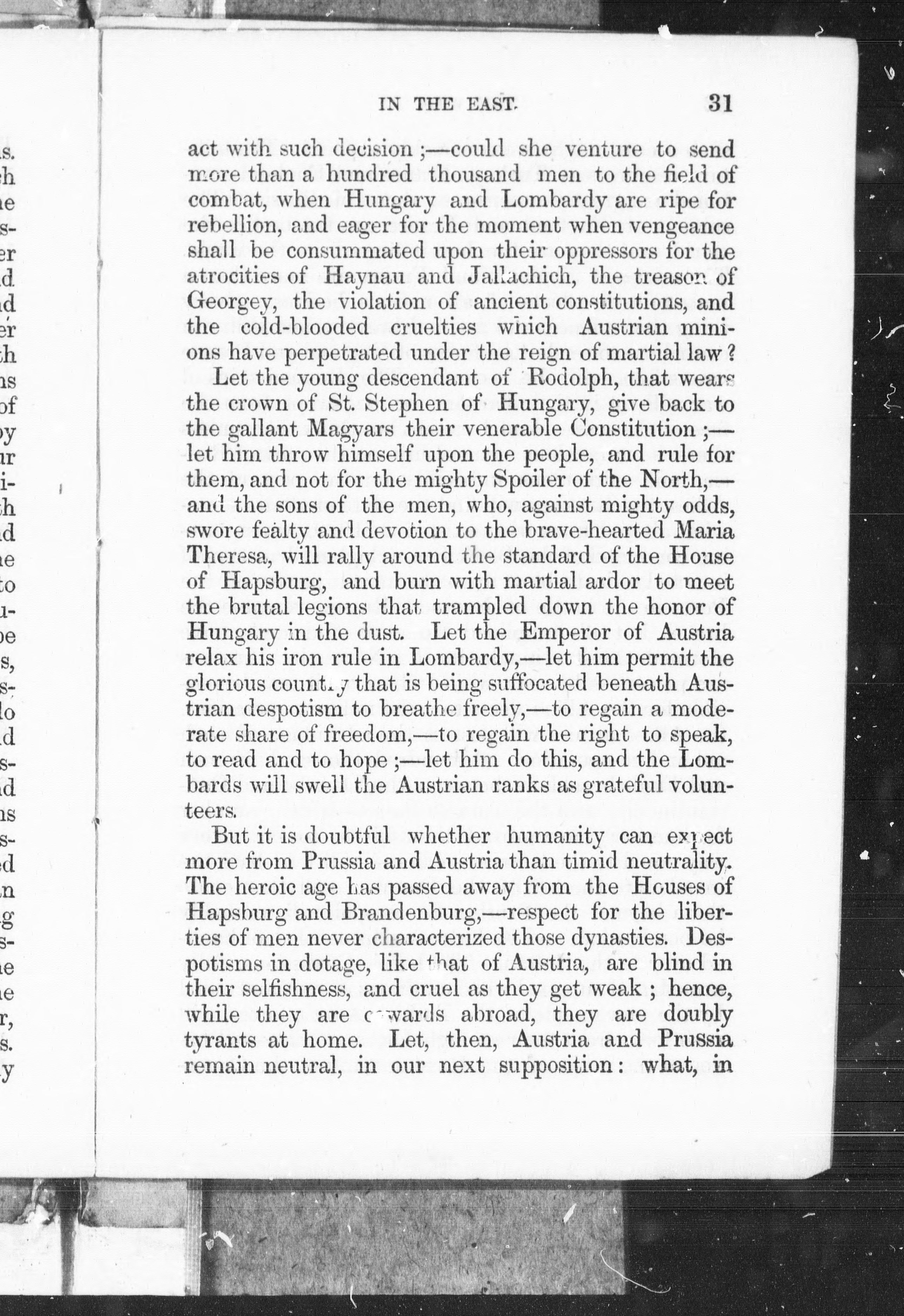 - The war in the East, the principals in the strife and its probable issue : a lecture delivered in Charlottetown, April 28, 1854, before the Mutual Improvement Association