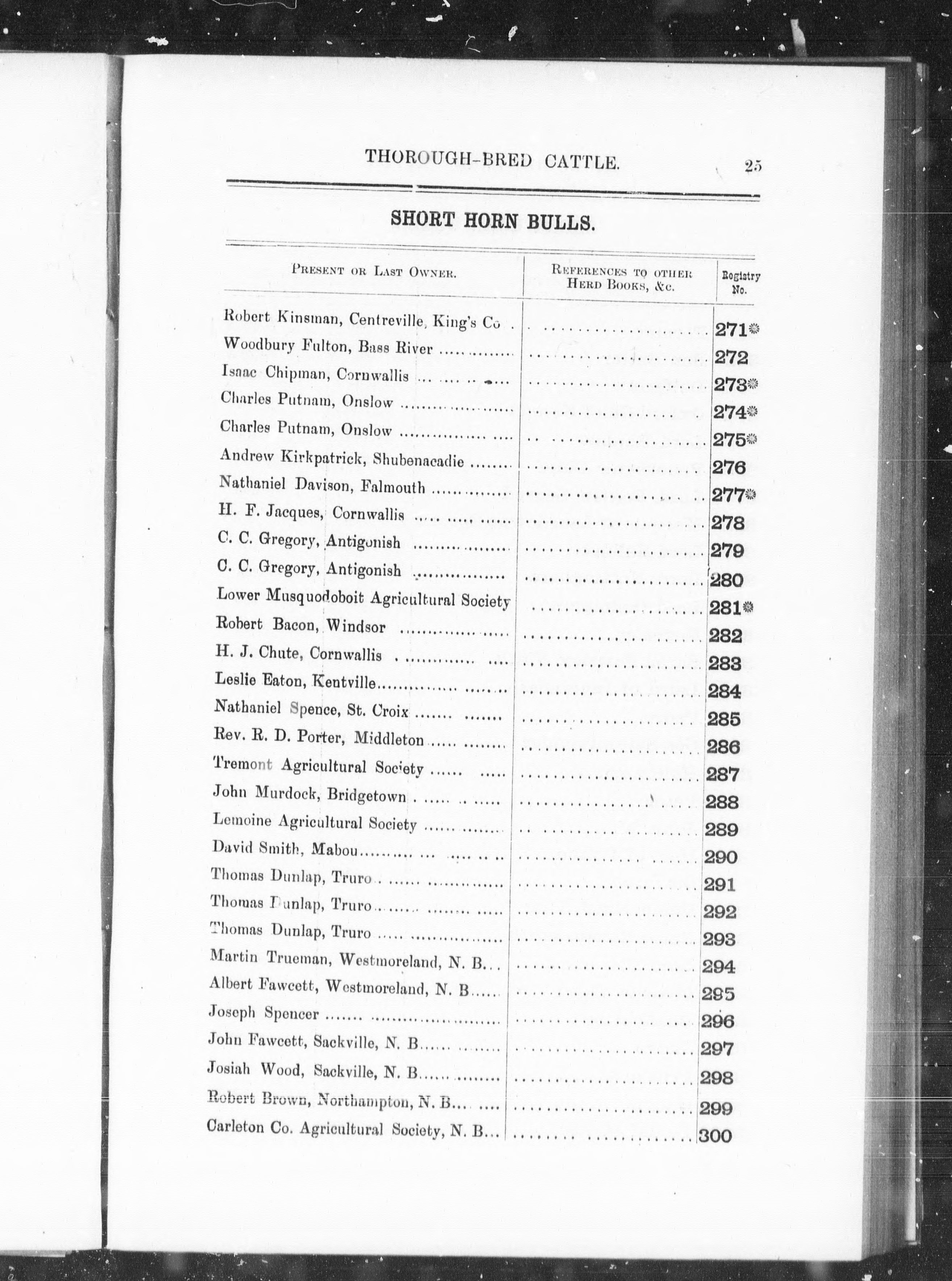 Nova Scotia register of thorough-bred cattle : including bulls, cows, and heifers of the following breeds: short horn, Devon, Ayrshire, polled Angus, Jersey, Holstein, Guernsey, Hereford, Galloway.