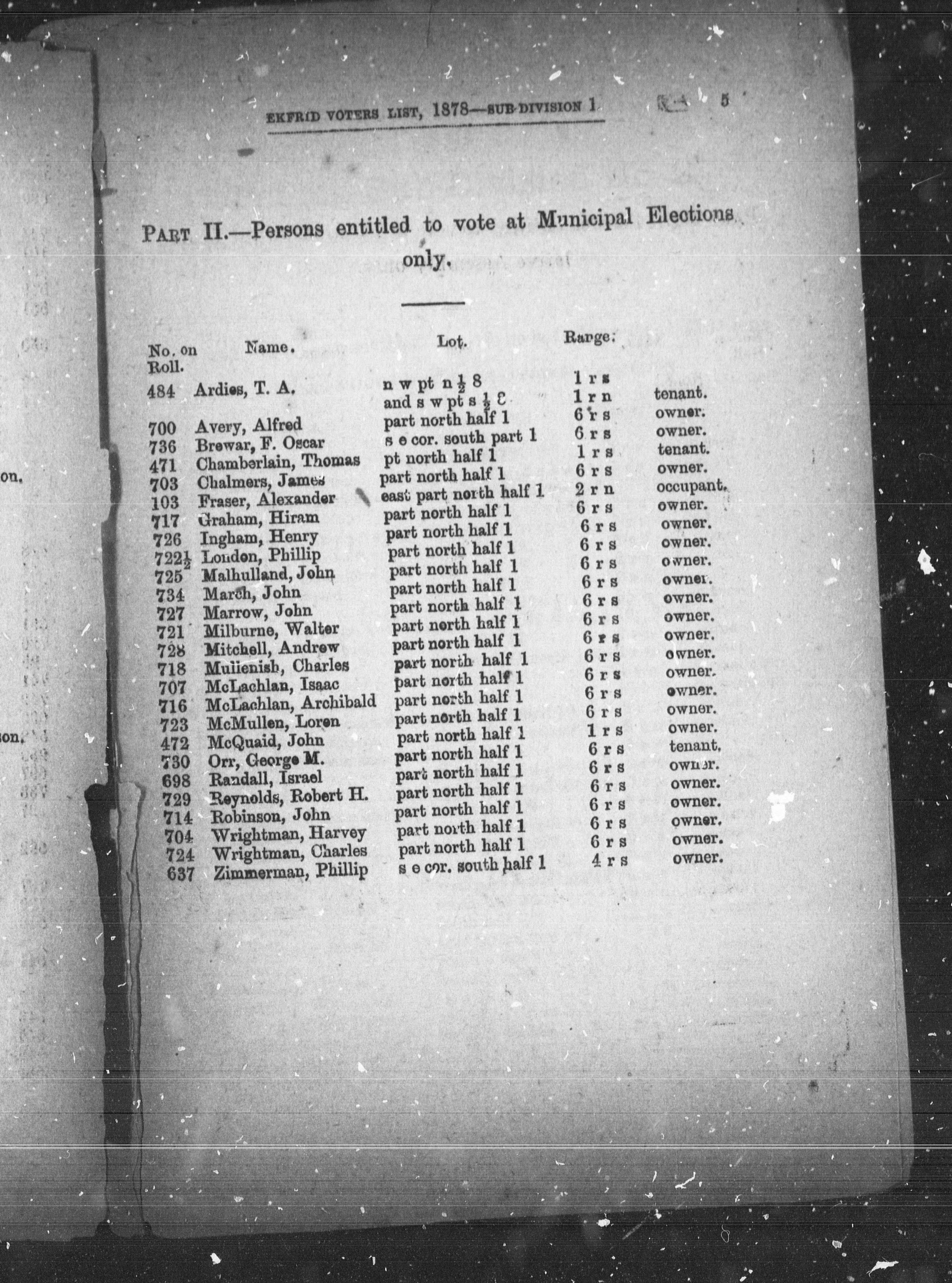 Ekfrid (Ont. : Canton) -- Listes électorales.