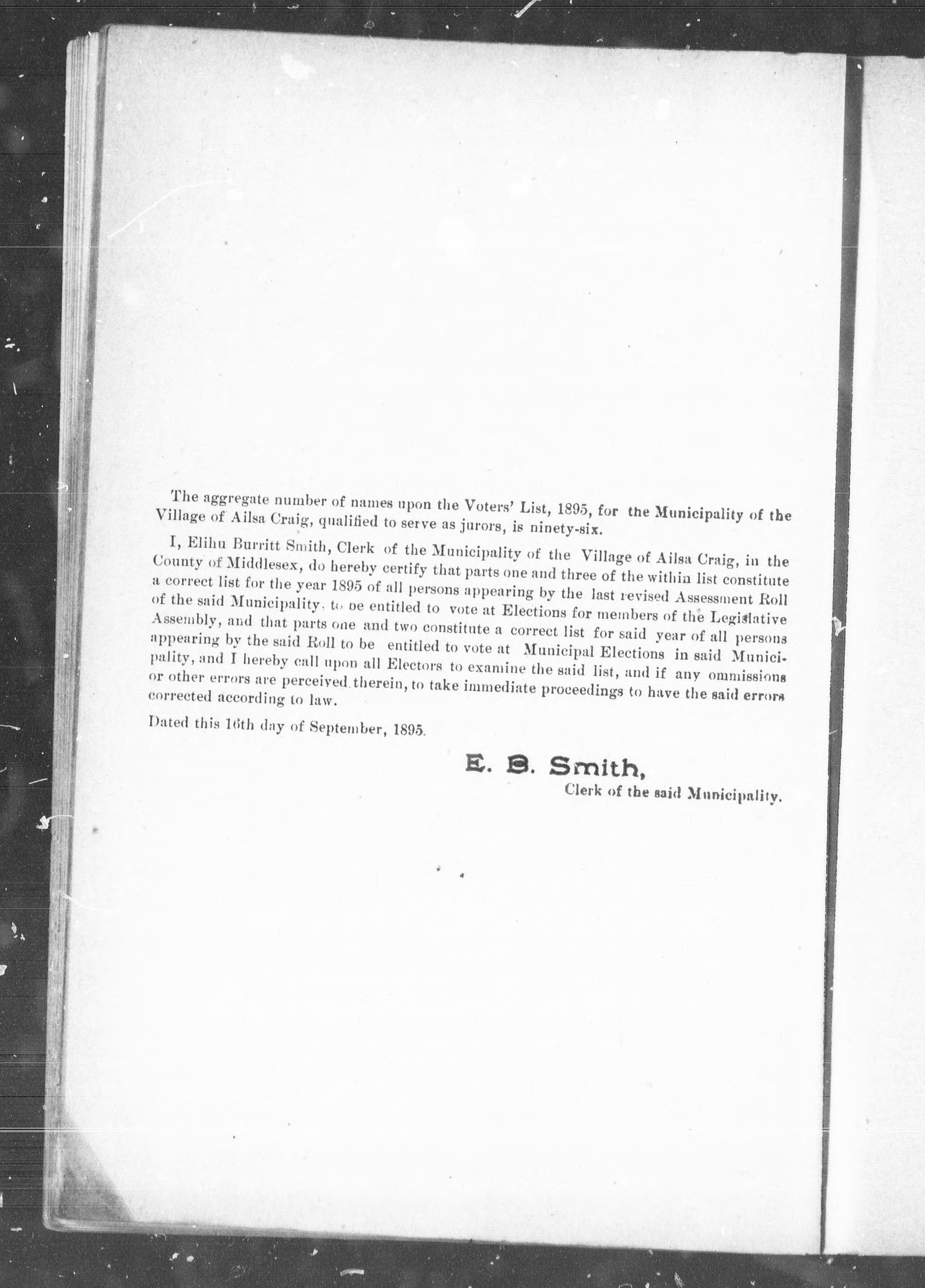 Ailsa Craig (Ont.) -- Listes électorales. - Document original