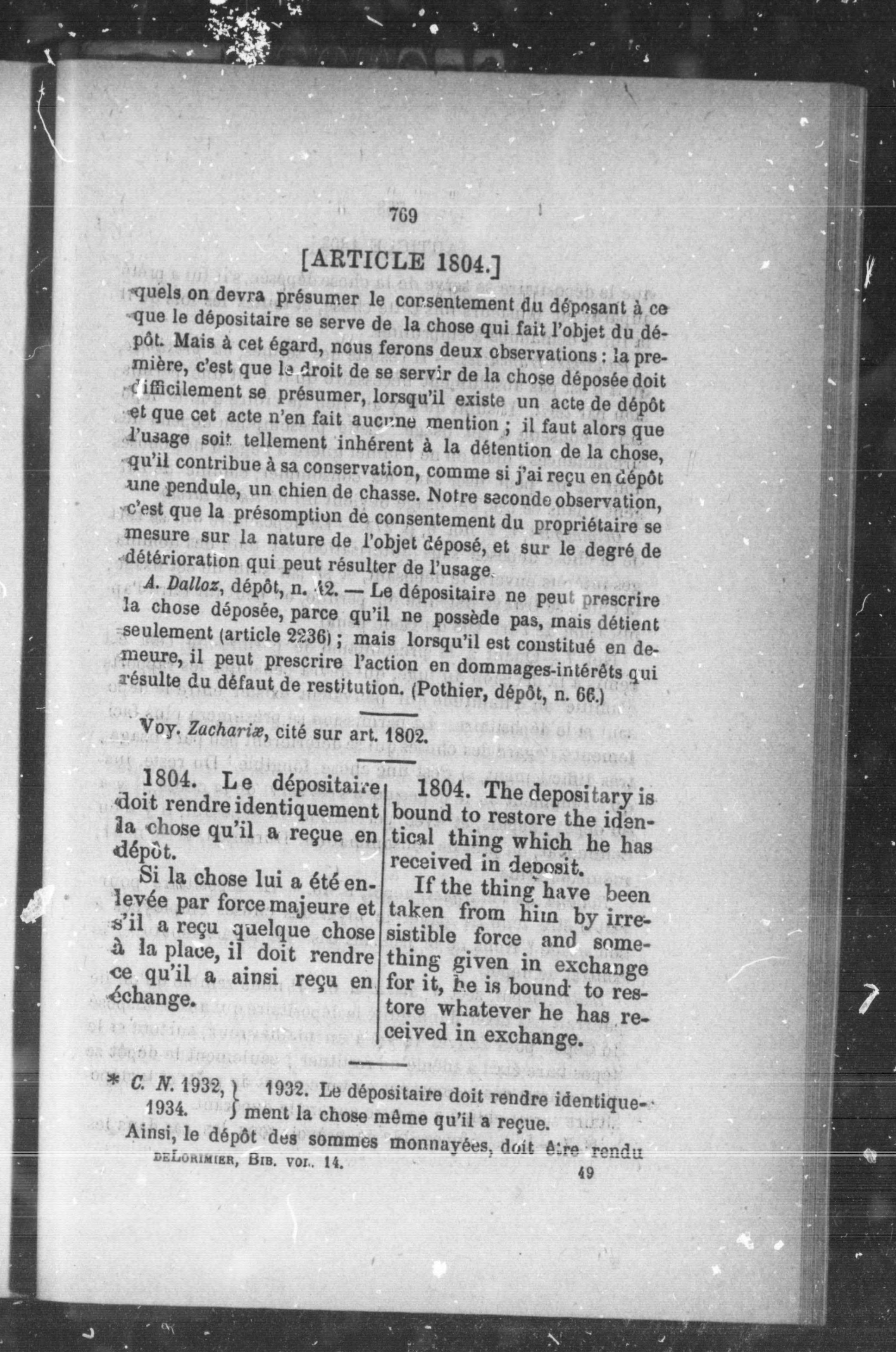 La Bibliothèque du code civil de la province de Québec (ci-devant Bas-Canada) ou recueil comprenant entre autres matières :