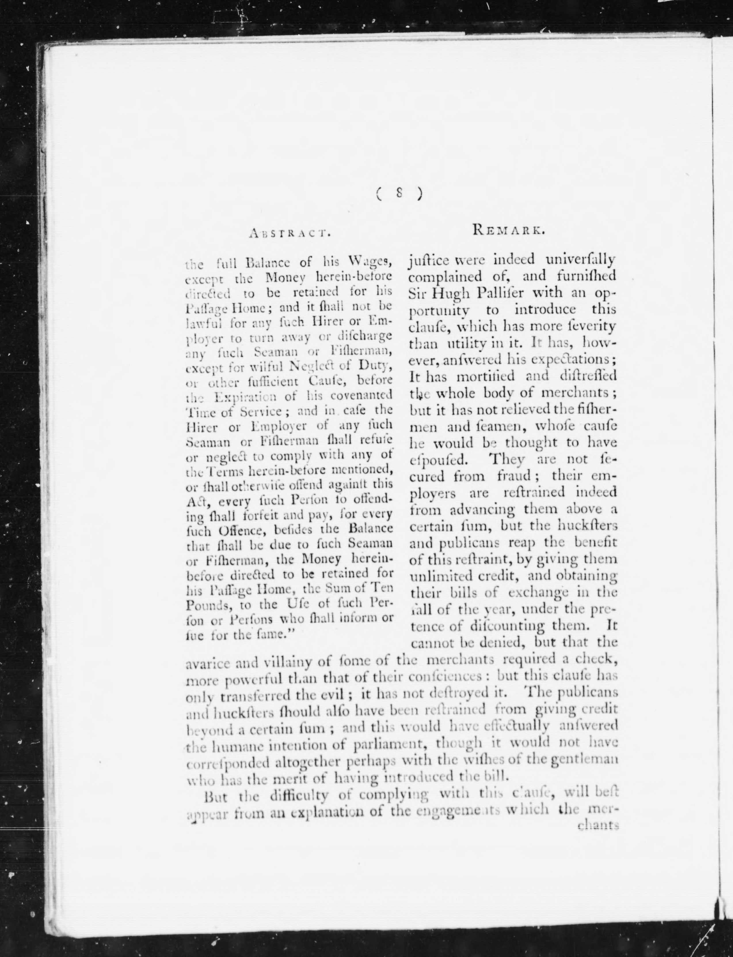 Remarks on an act of Parliament, passed in the 15th year of His Majesty's reign, on the credit of Vice-Admiral Sir Hugh Palliser's information : intituled "An Act for the encouragement of the fisheries carried on from Great Britain, Ireland" &c. to Newfoundland, &c., for the repeal or amendment of which a petition from the merchants concerned has this session been presented to the House of Commons; to which is annexed an authentic and complete state of the fishery in 1771 ...