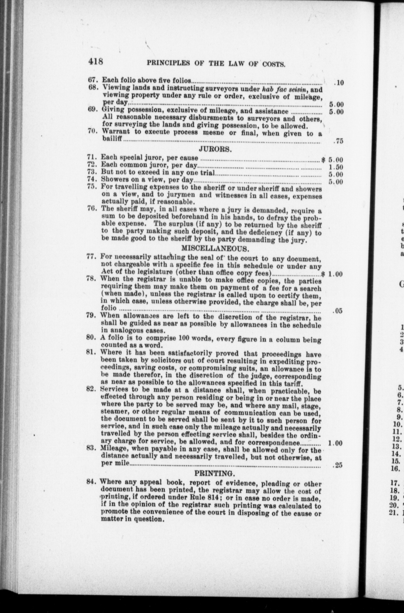 The principles of the law of costs and digest of cases applicable thereto, with tariffs of fees, precedents of bills of costs, and forms : also miscellaneous tariffs of fees