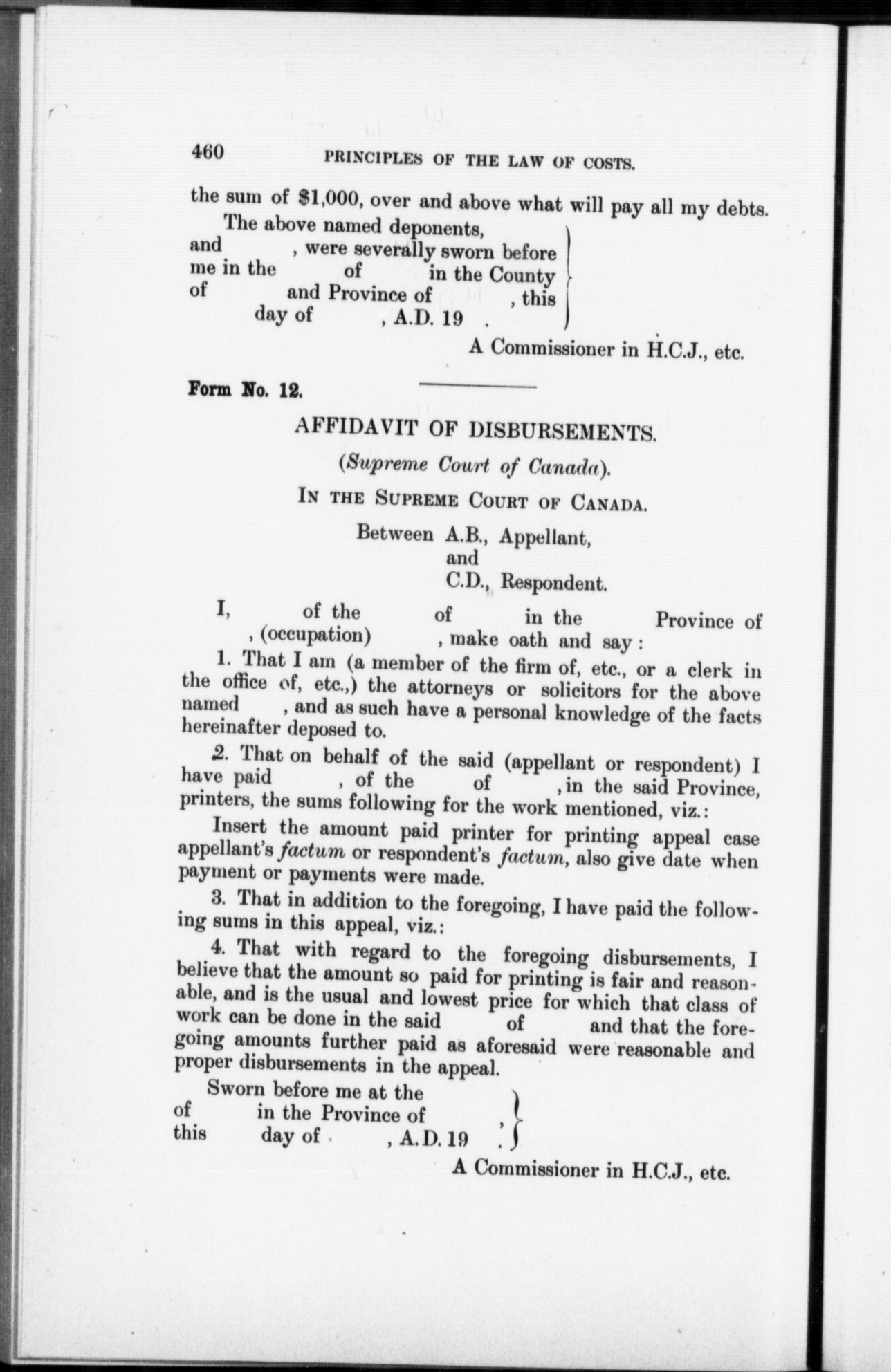 The principles of the law of costs and digest of cases applicable thereto, with tariffs of fees, precedents of bills of costs, and forms :