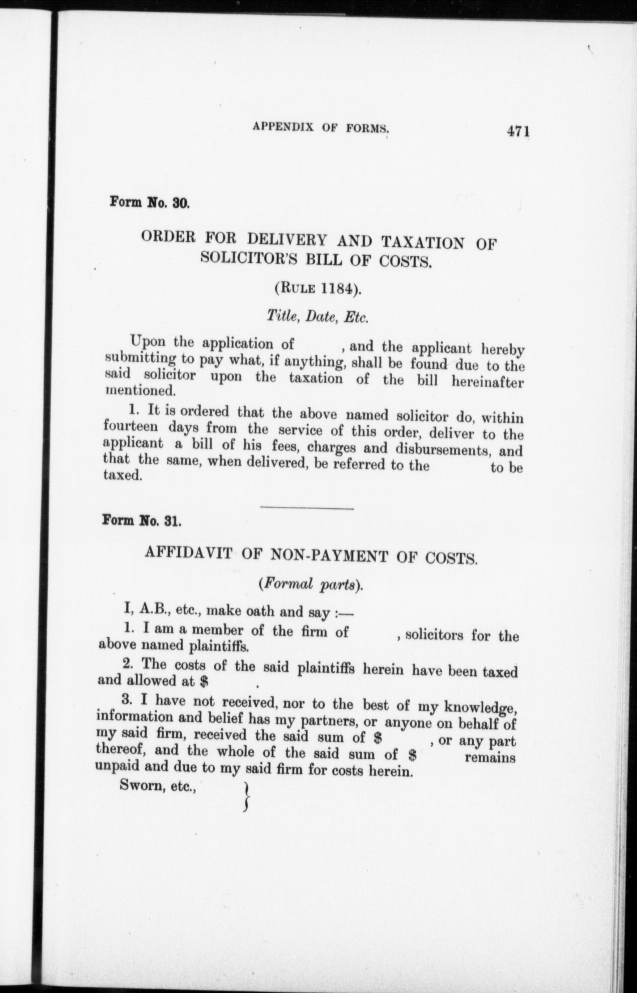 The principles of the law of costs and digest of cases applicable thereto, with tariffs of fees, precedents of bills of costs, and forms :