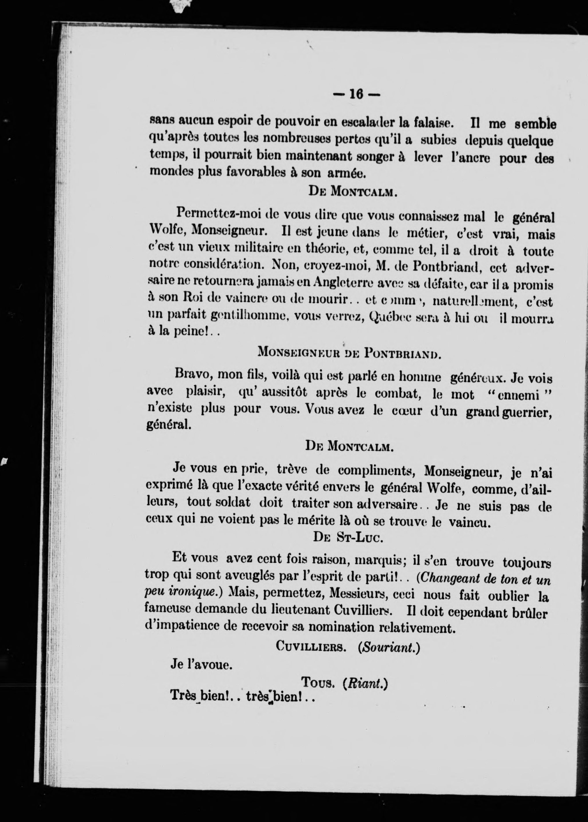 Plains of Abraham, Battle of the, Québec, 1759 -- Drama.
