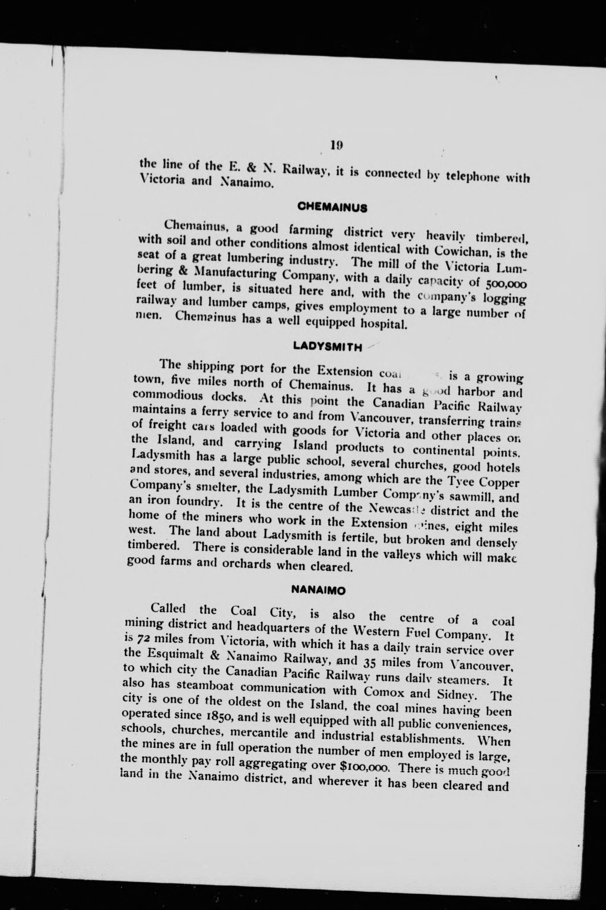 The agricultural and industrial resources of Vancouver Island, British Columbia : a promising field for farming, fruit growing, dairying, mining, lumbering and fishing in the Esquimalt and Nanaimo railway belt.