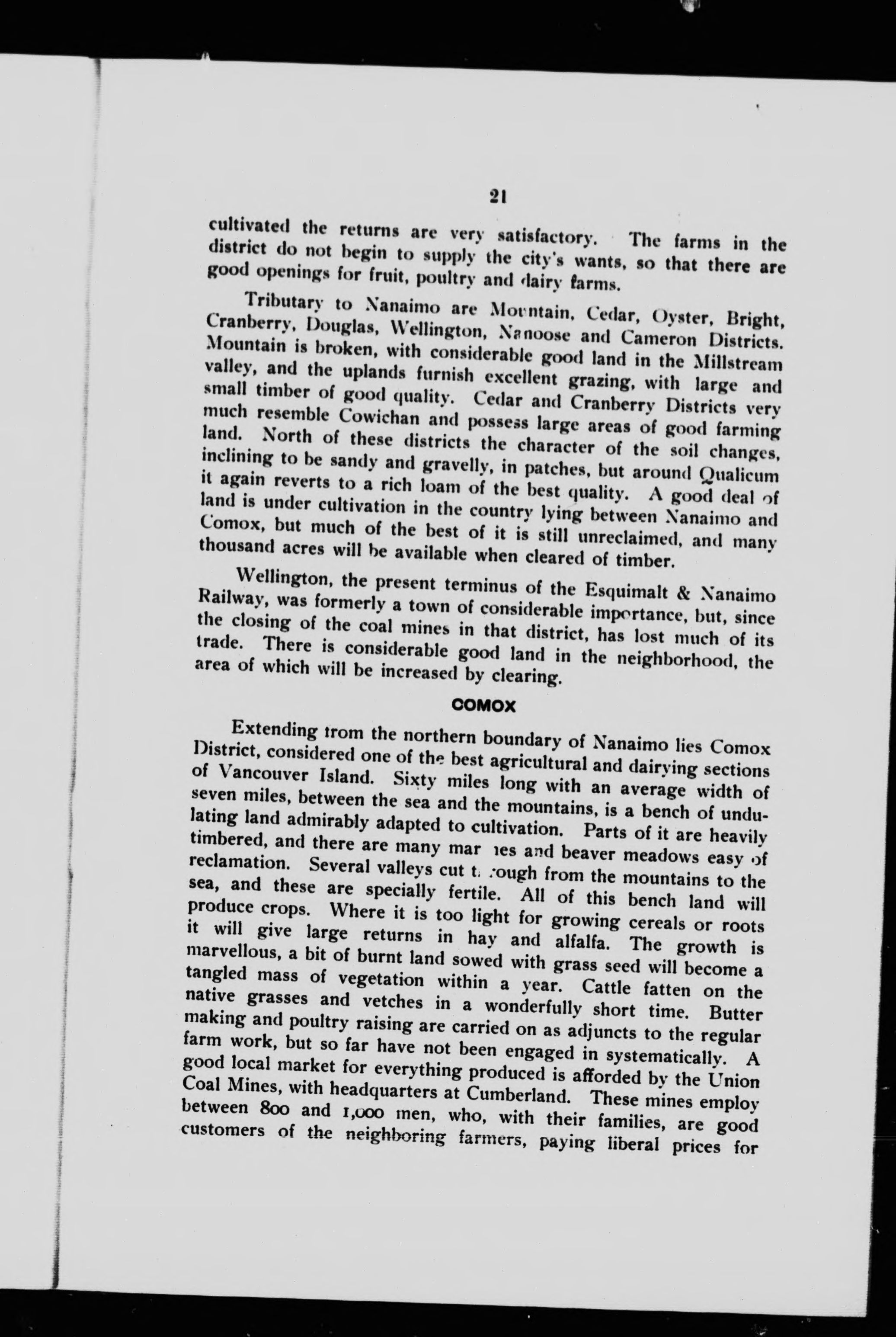 The agricultural and industrial resources of Vancouver Island, British Columbia : a promising field for farming, fruit growing, dairying, mining, lumbering and fishing in the Esquimalt and Nanaimo railway belt.