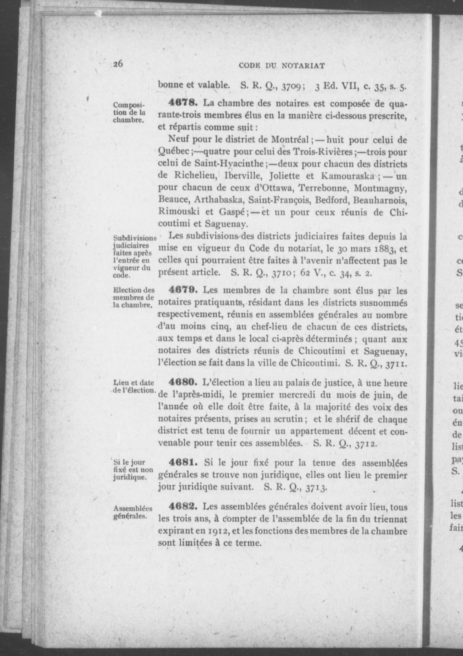 Code du notariat et réglements de la Chambre des notaires de la province de Québec. - Adresse bibliographique