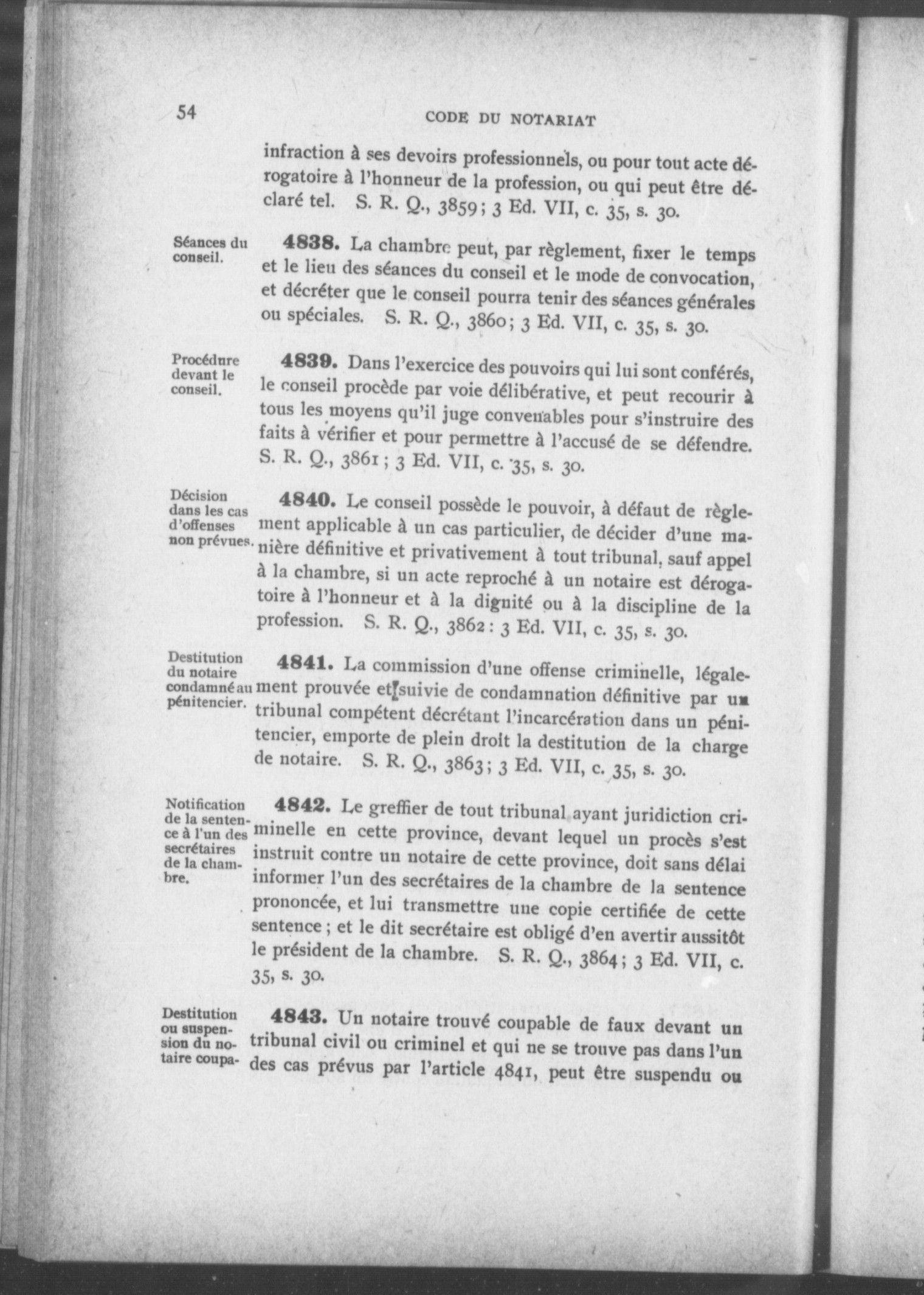 Code du notariat et réglements de la Chambre des notaires de la province de Québec. - Adresse bibliographique