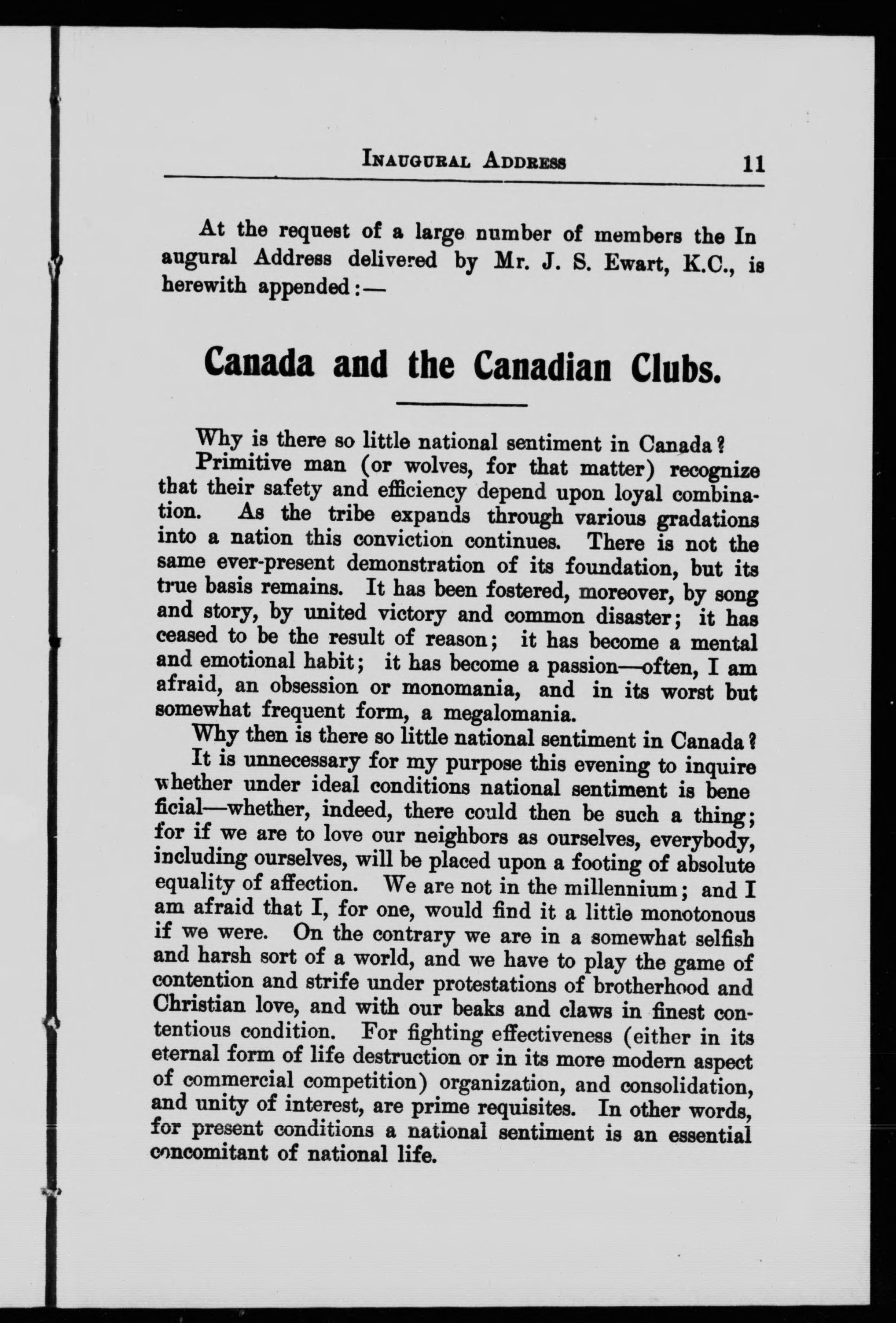 Report of the Canadian Club of Winnipeg : together with the inaugural address of the first president, Mr. J.S. Ewart. - Published