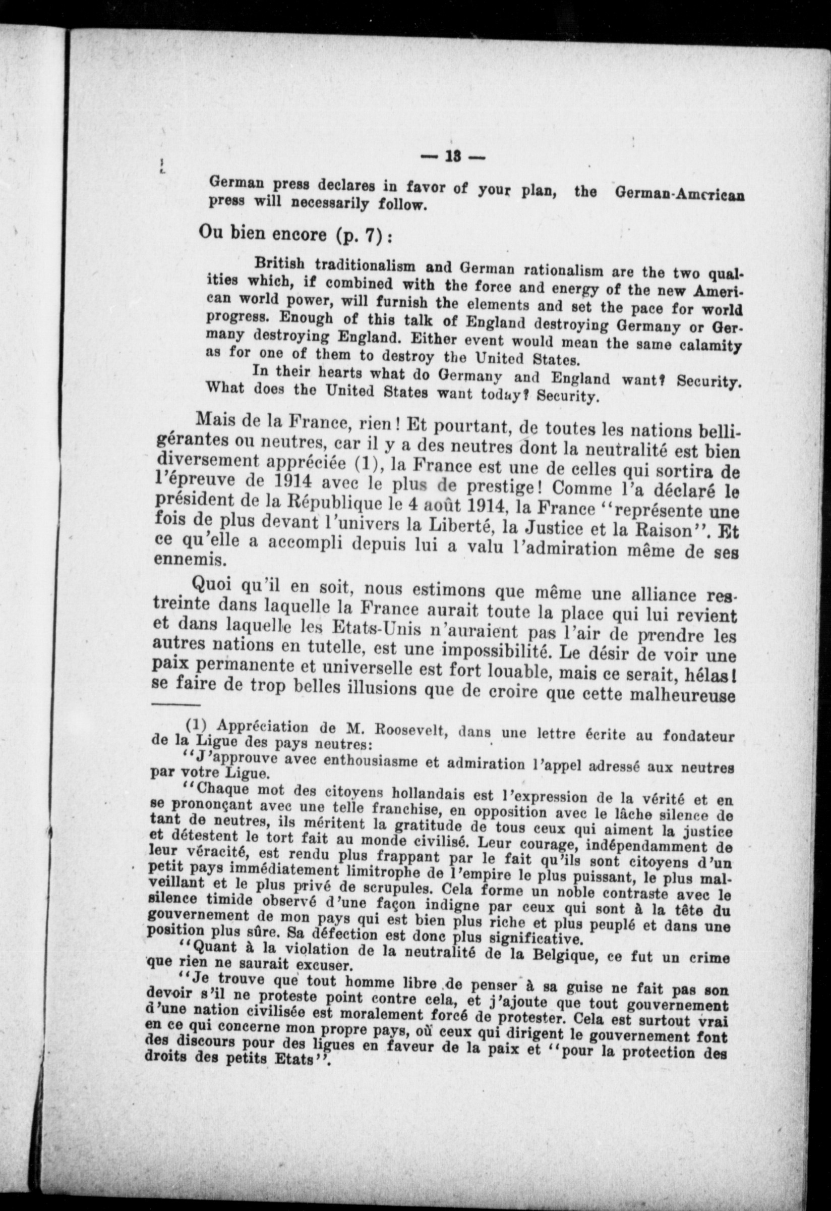 - La propagande allemande : peace through a disentangling alliance, les dessous d'un projet d'alliance