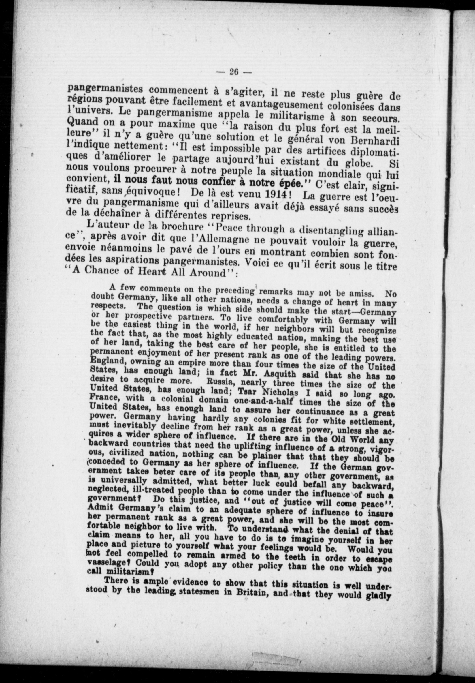 - La propagande allemande : peace through a disentangling alliance, les dessous d'un projet d'alliance
