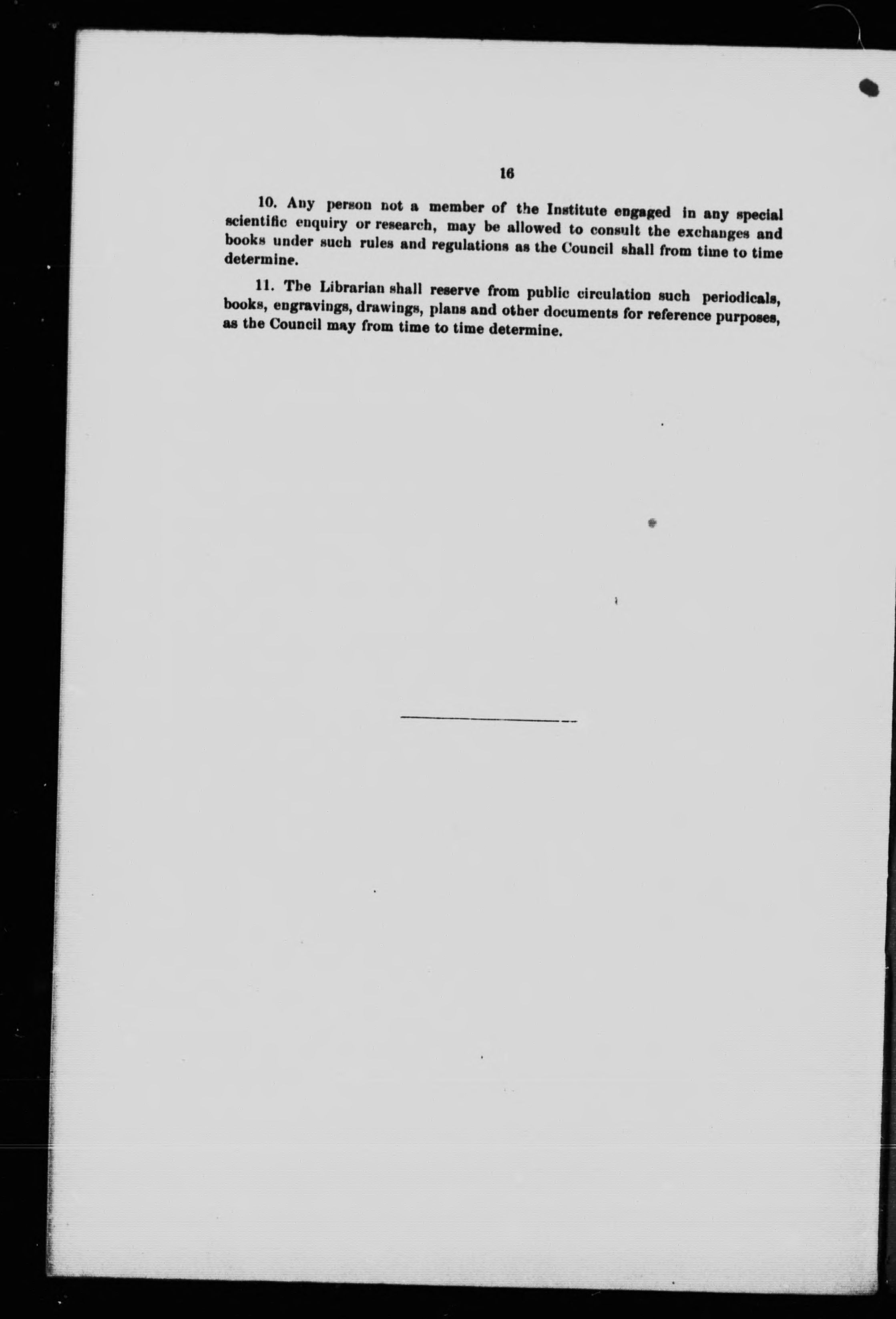 Charter of the Canadian Institute and regulations adopted at a special meeting held April 9th, 1892.