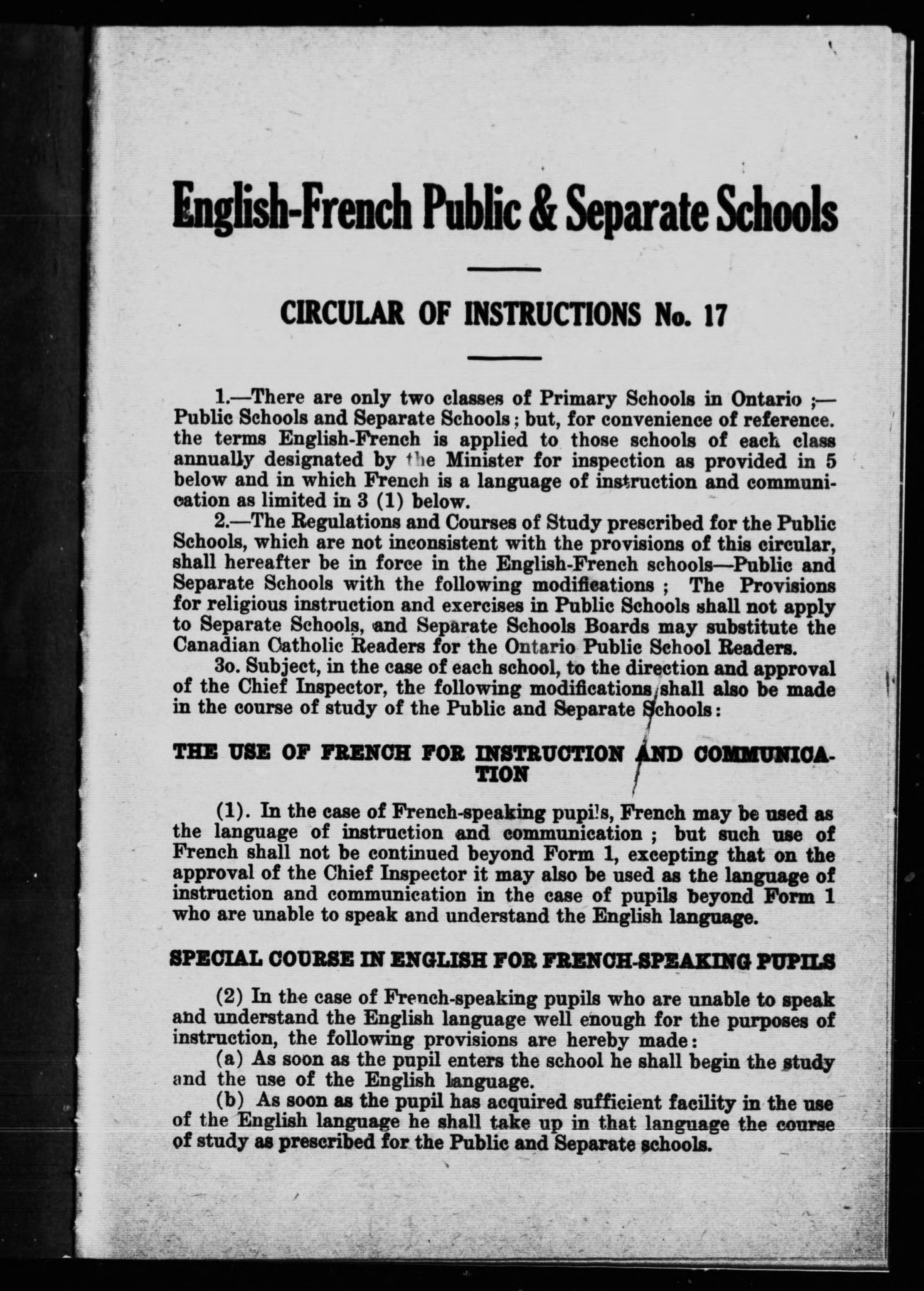 Français (Langue) -- Ontario. - Document original