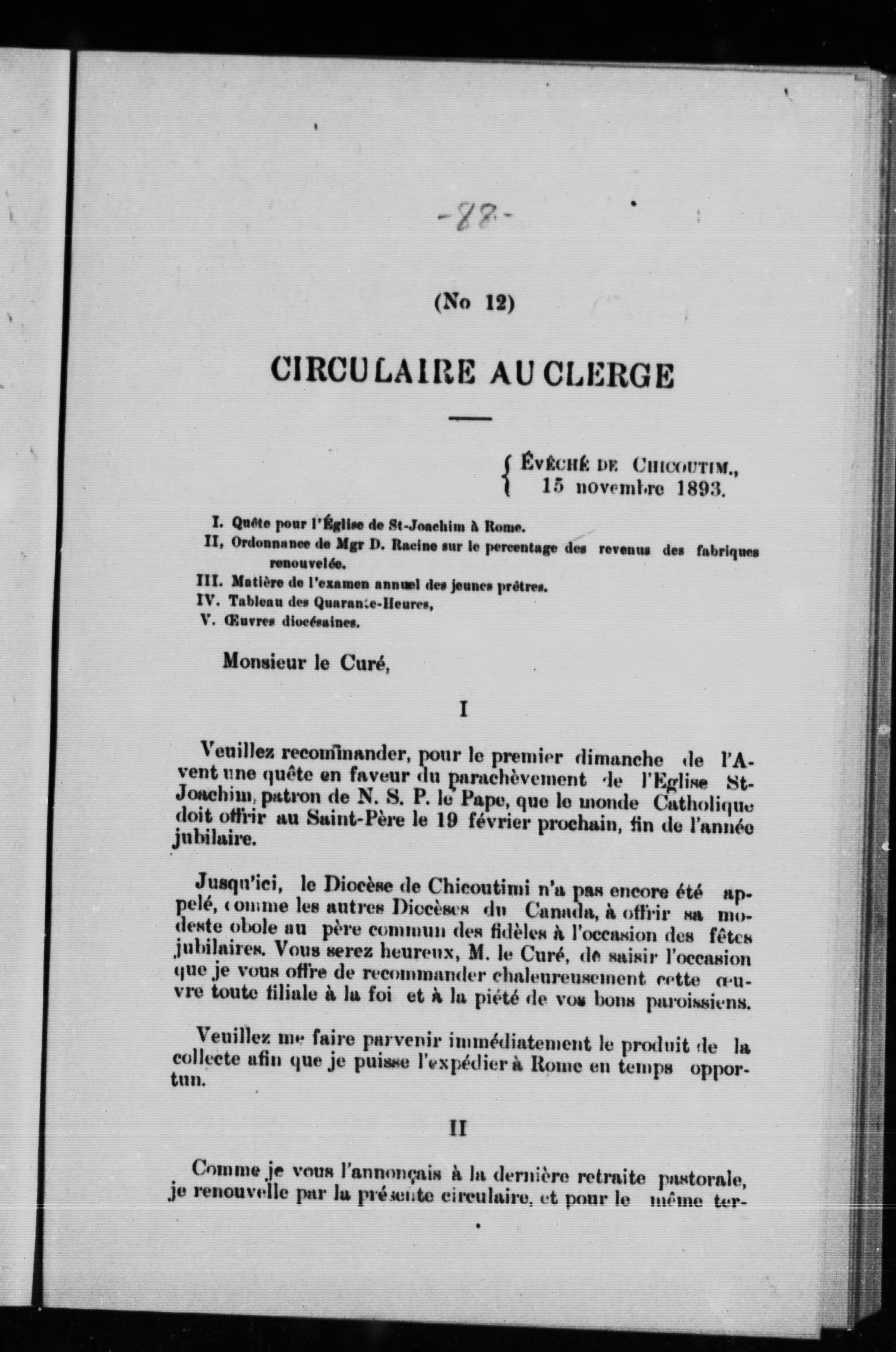 Faux-titre: Mandements des Évêques de Chicoutimi.