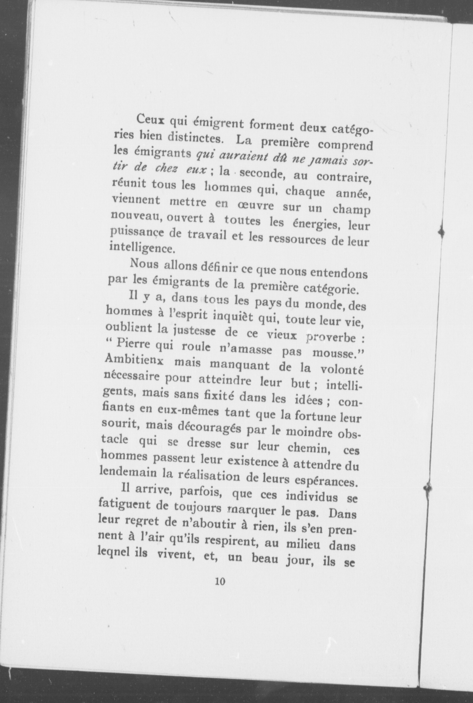 Dépouillement: Introduction -- Questions d'immigration -- Organization et fonctionnement des banques -- Les chemins de fer -- Navigation fluviale et océanique.