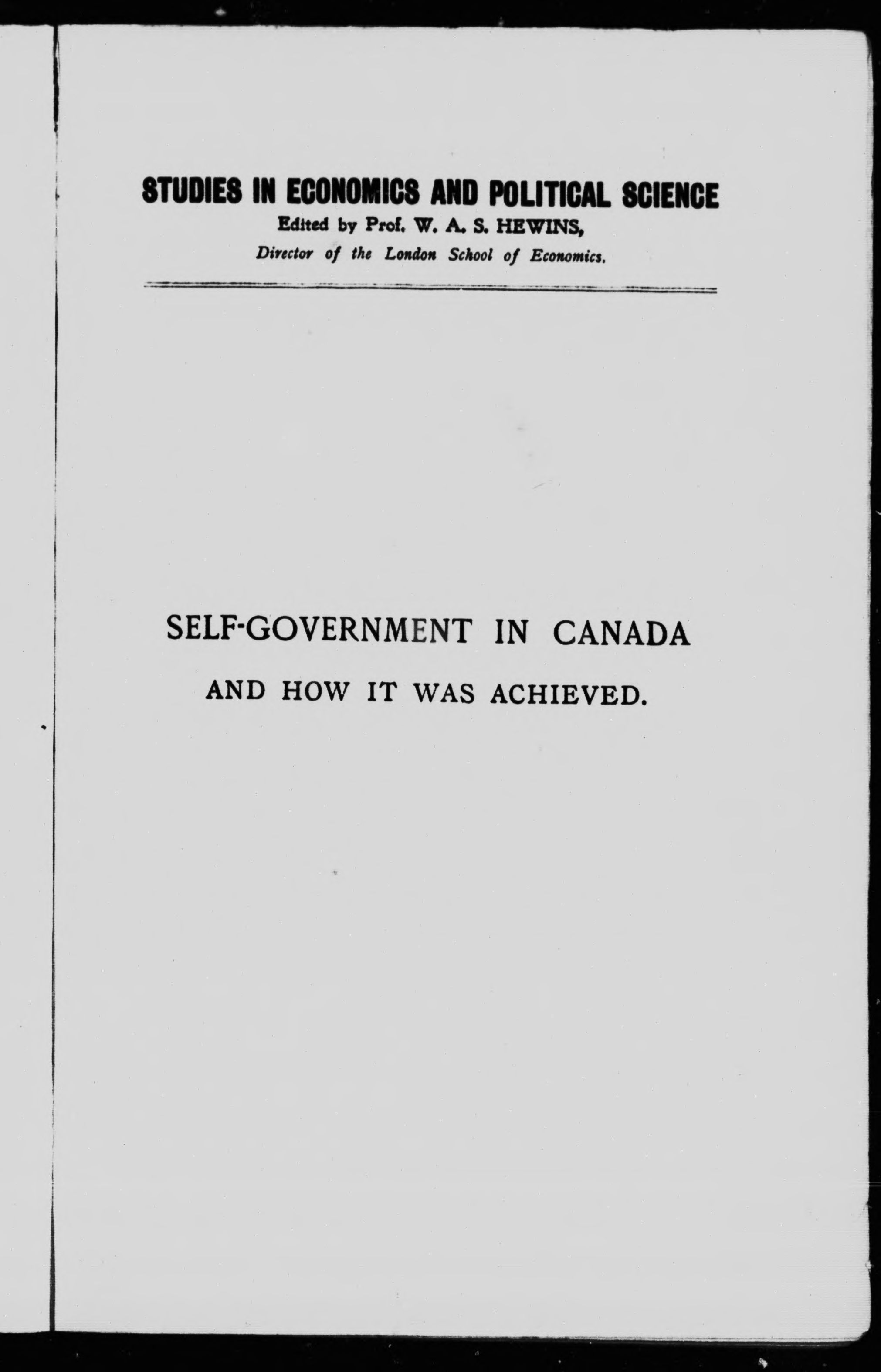 Self-government in Canada and how it was achieved : the story of Lord Durham's report