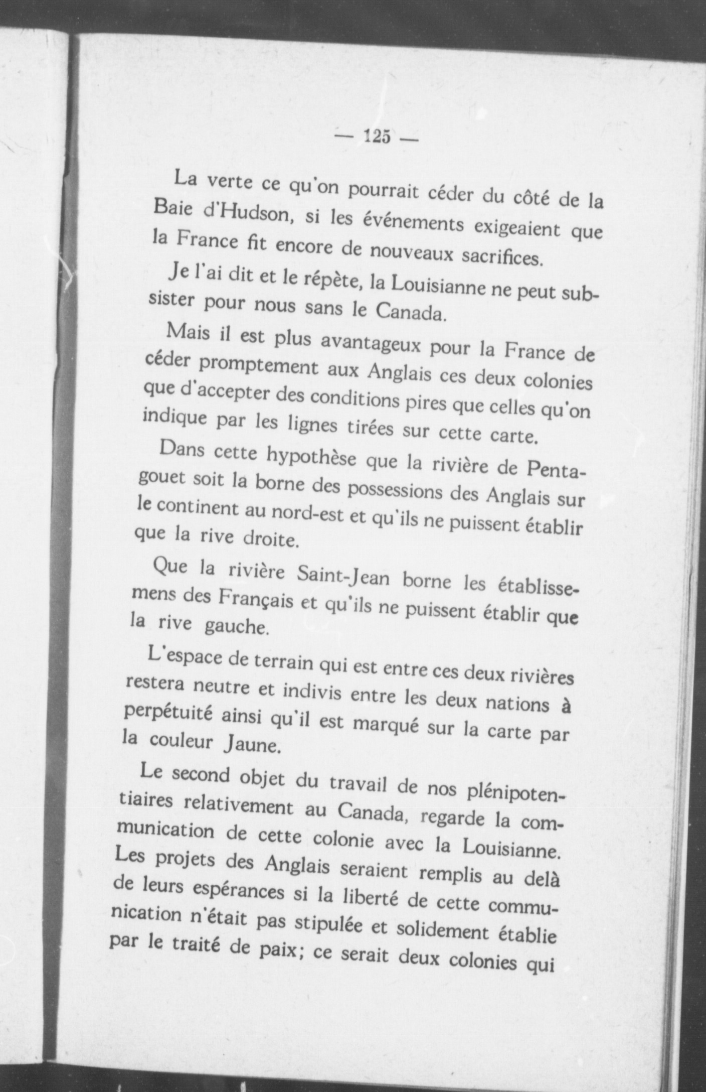 Appendice: Mémoire sur les limites du Canada (par M. Dumas) 5 avril 1761 : pages [120]-134.