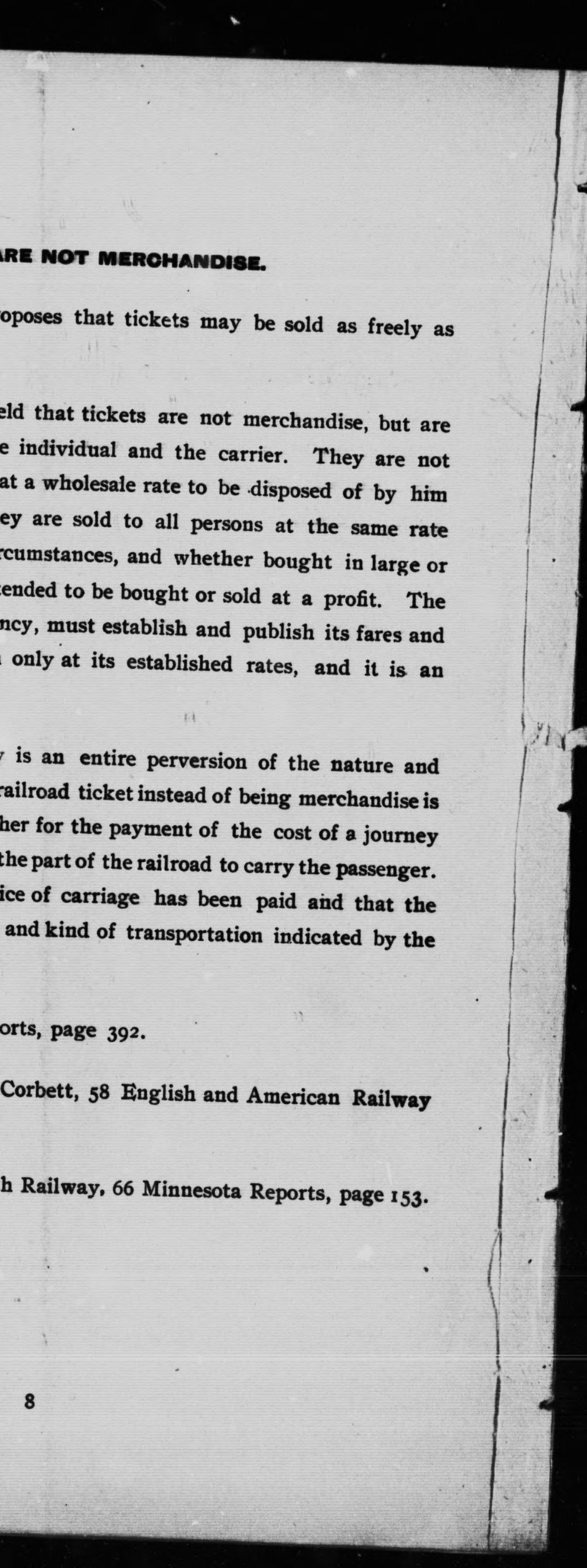 Concise facts against the passage of an act to amend the act respecting the sale of railway passenger tickets /