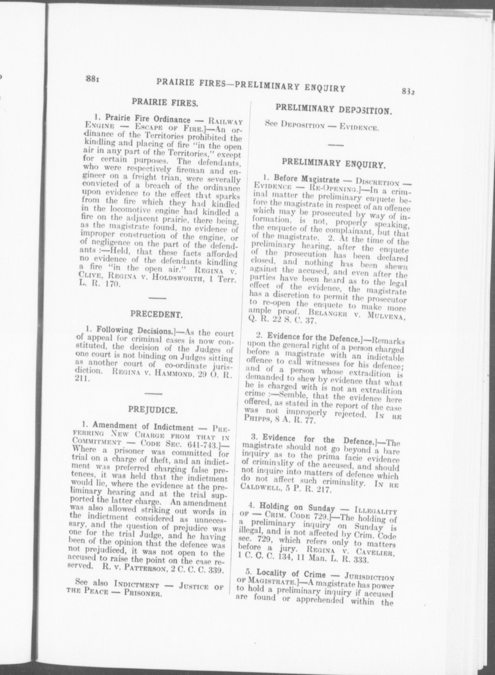 The digest of Canadian criminal case law : comprising the reported cases on criminal law decided in any of the courts in the provinces of Canada and the North-West Territories having criminal jurisdiction in that behalf in the first instance and on appeal from the earliest times to the year 1907 ...