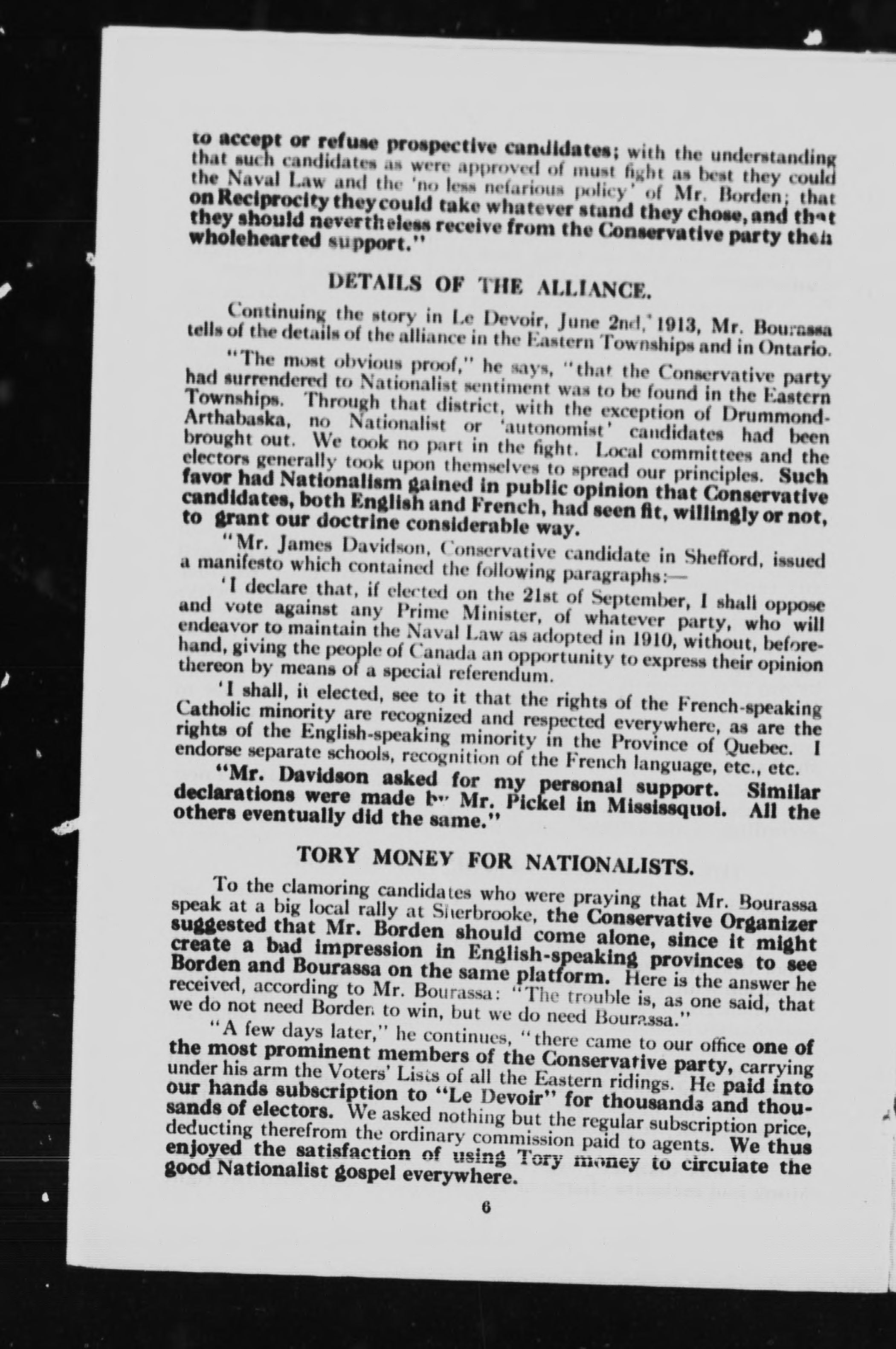 The story of the Nationalist-Conservative alliance told by Henri Bourassa, the nationalist leader :