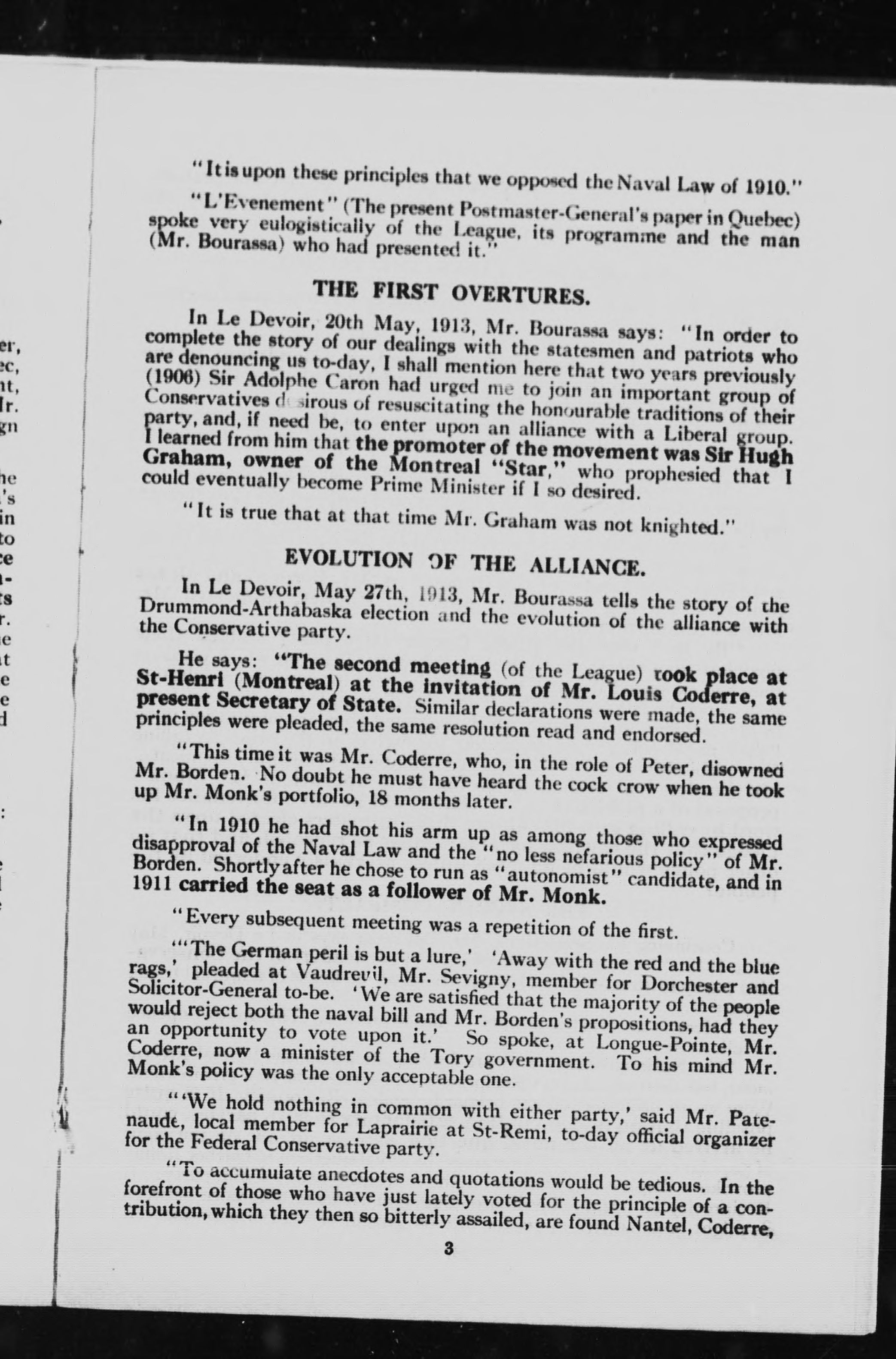 The story of the Nationalist-Conservative alliance told by Henri Bourassa, the nationalist leader :