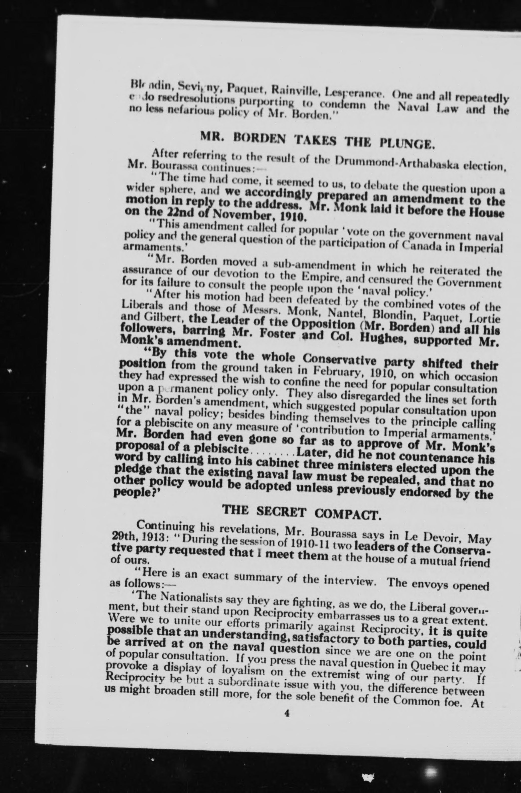 The story of the Nationalist-Conservative alliance told by Henri Bourassa, the nationalist leader :