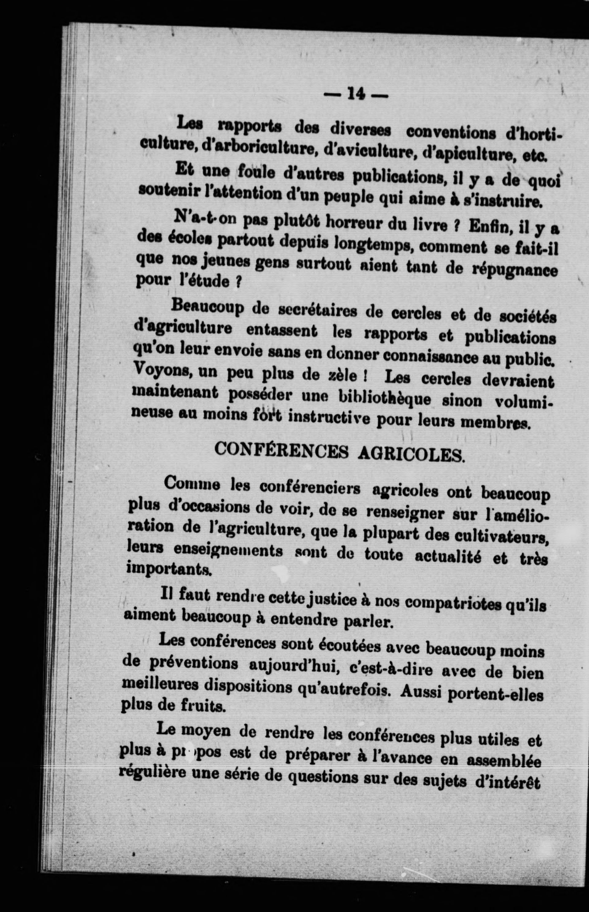 - Considérations sur les cercles agricoles et les sociétés d'agriculture avec instructions aux juges dans les concours et les expositions : échelles de points officielles pour juger les chevaux, le bétail, les moutons, porcs, volailles et les terres ou pièces de terres les mieux tenues, récoltes sur pied etc., etc.