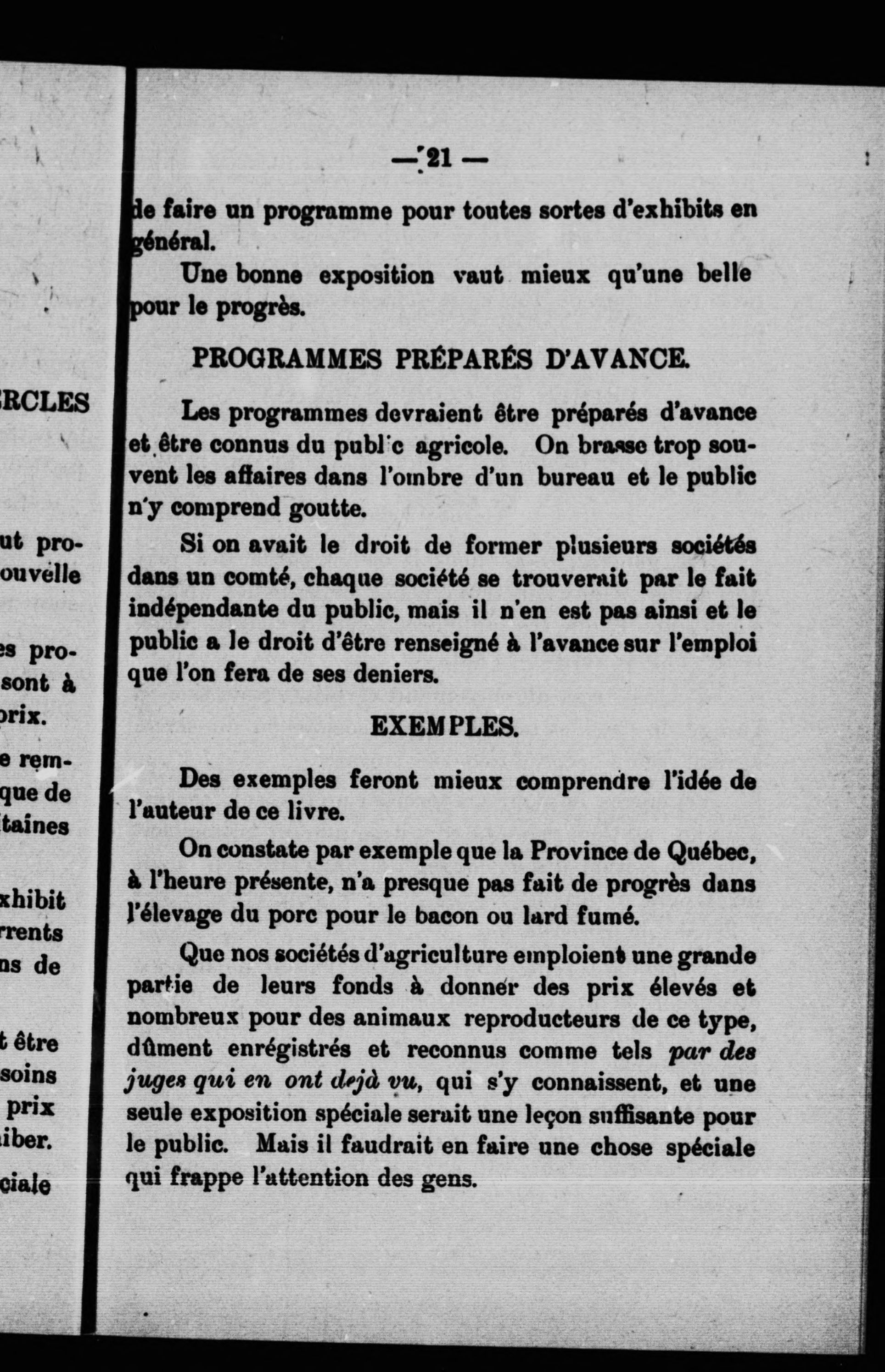 - Considérations sur les cercles agricoles et les sociétés d'agriculture avec instructions aux juges dans les concours et les expositions : échelles de points officielles pour juger les chevaux, le bétail, les moutons, porcs, volailles et les terres ou pièces de terres les mieux tenues, récoltes sur pied etc., etc.