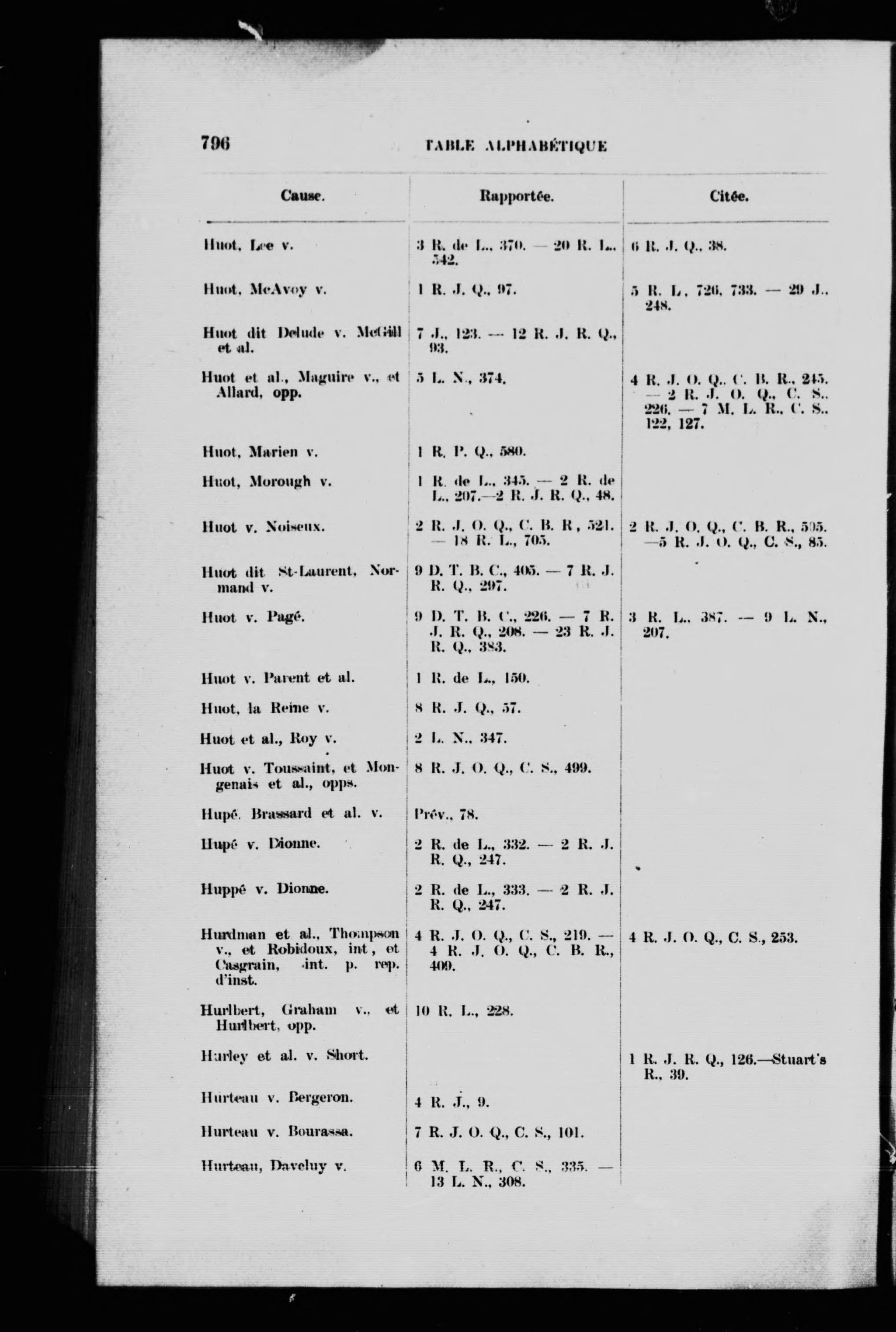 Faux-titre: Table alphabétique des causes rapportées et citées de la province de Québec.