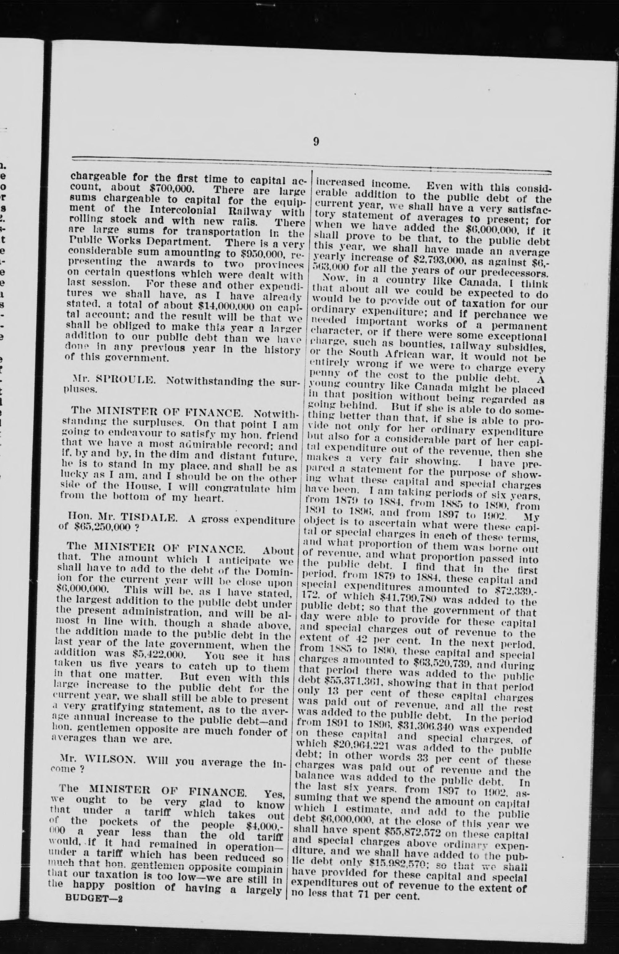 - Budget speech delivered by Hon. William S. Fielding, M.P., minister of finance, in the House of Commons, Monday, March 17, 1902.
