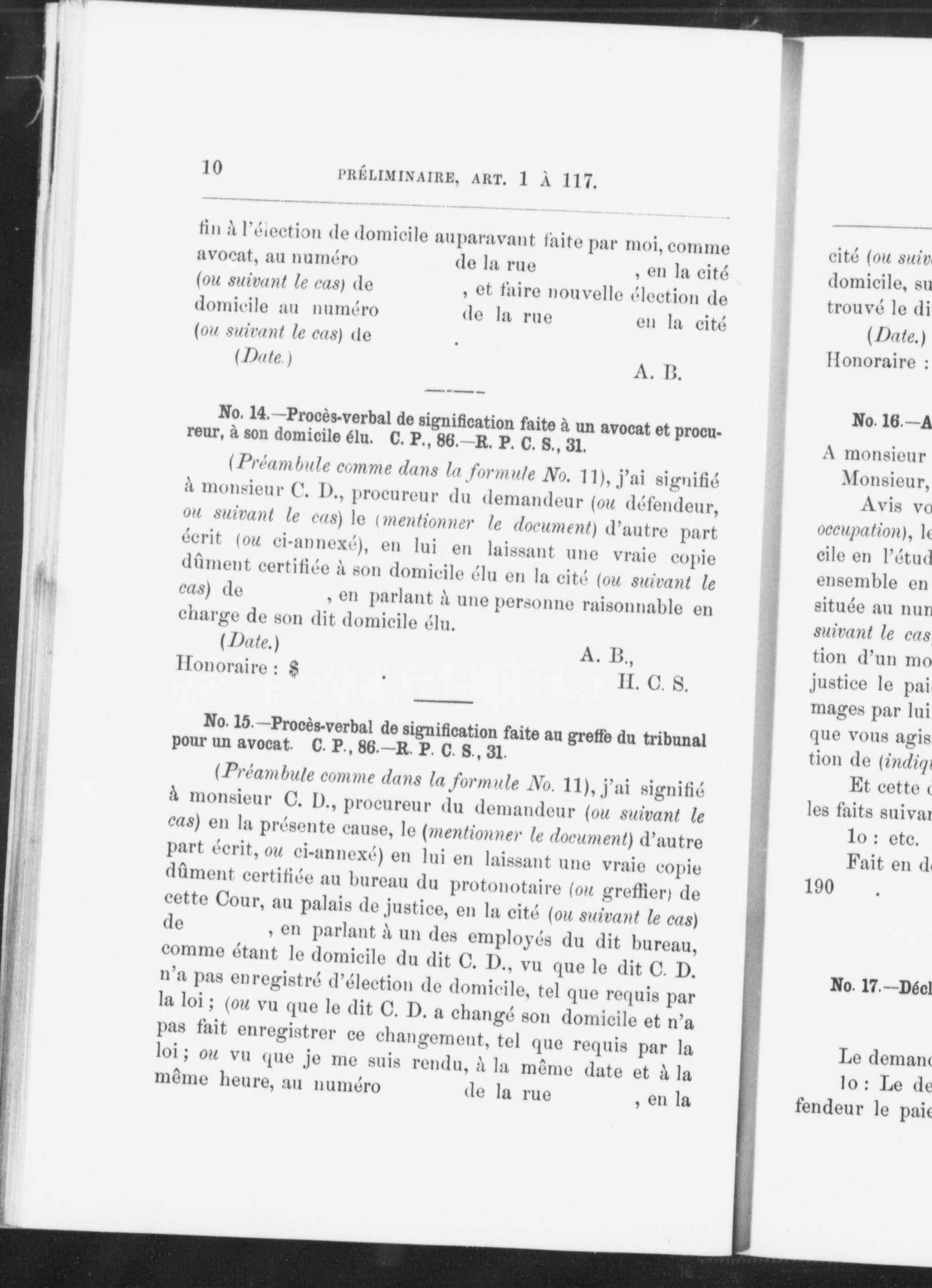 Formulaire de procédure de la province de Québec : comprenant un grand nombre de formules relatives au code de procédure civile, aux régles de pratique, et au code civil, contenant aussi des formules relatives à la loi du Barreau et aux statuts refondus de Québec