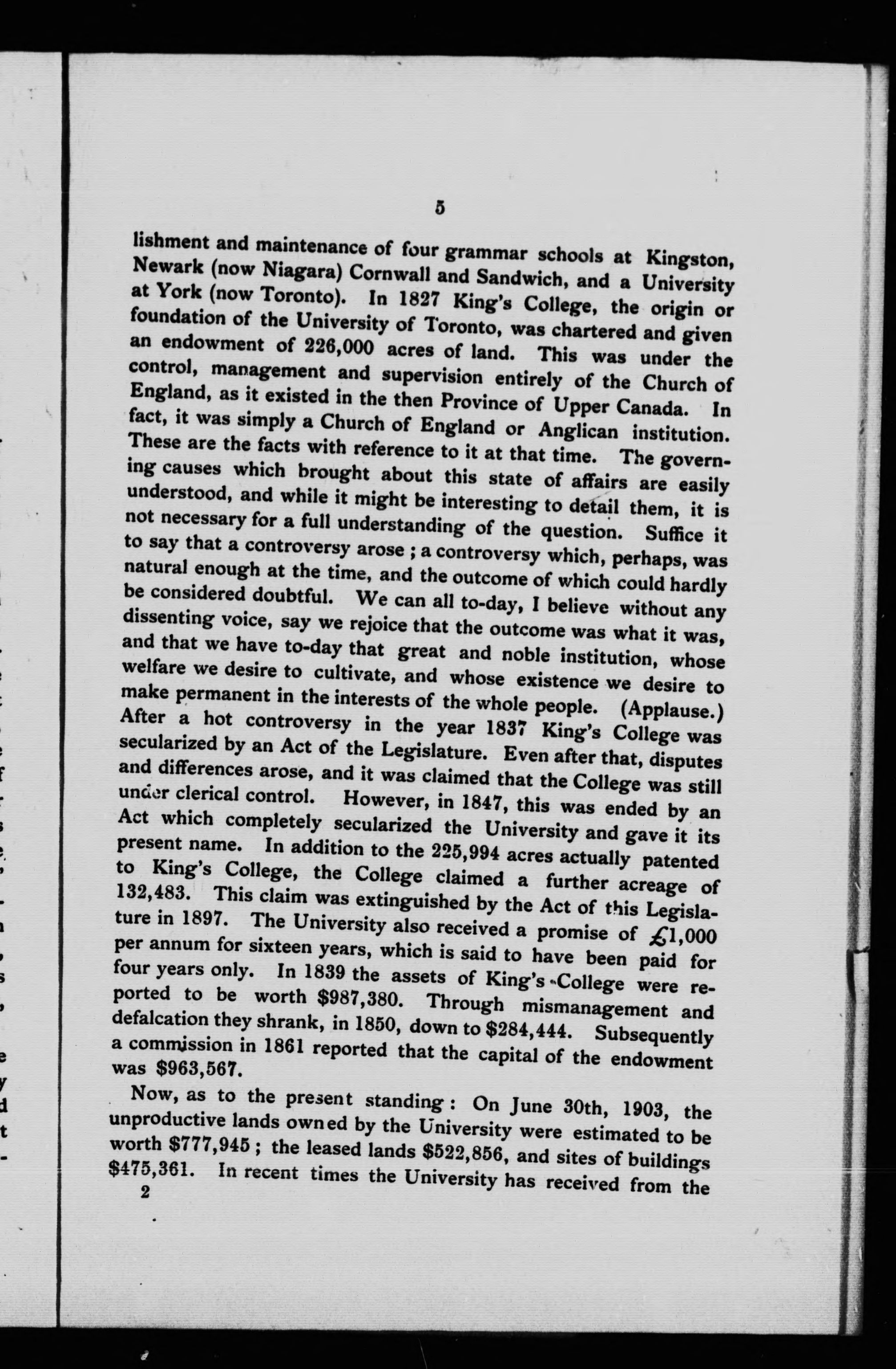 Speech delivered by the Hon. J.P. Whitney, L.LD., D.C.L., K.C., M. P. P., premier and attorney general of Ontario on introducing the Act respecting the University of Toronto, on Wednesday, May 17th, 1905.