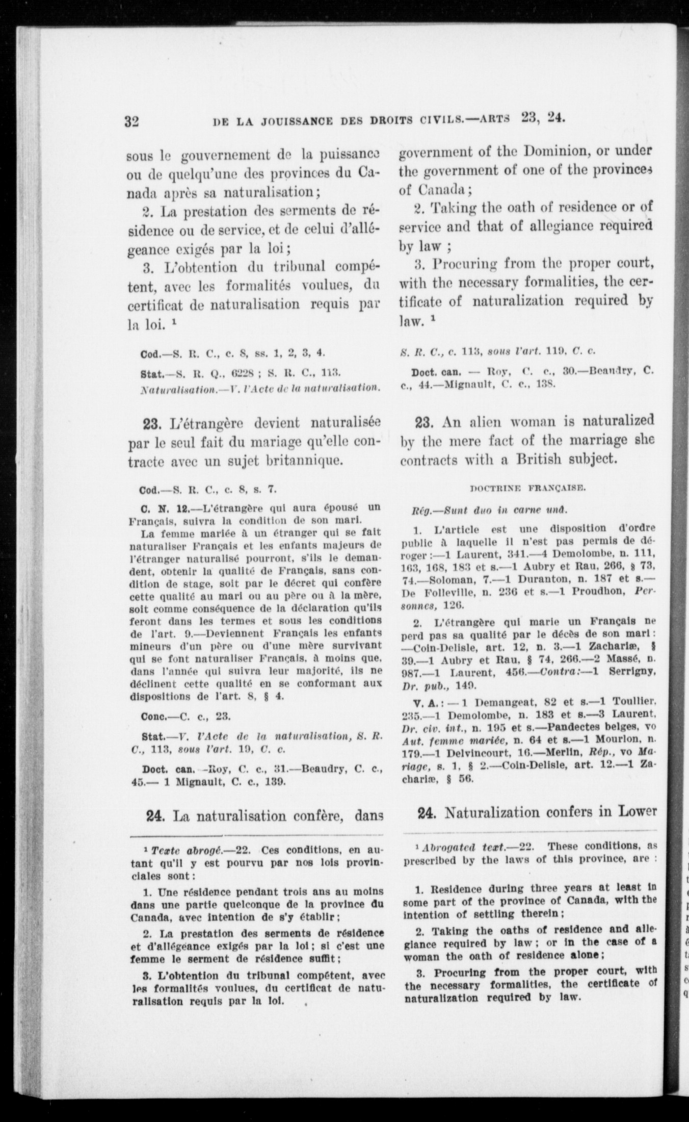 Le code civil de la province de Québec, annoté : contenant les textes français et anglais et celui du code Napoléon, les autorités et les remarques des codificateurs, le droit ancien, la concordance des articles, le droit statutaire, la doctrine canadienne, la jurisprudence canadienne, la doctrine française et les règles de droit avec divers appendices