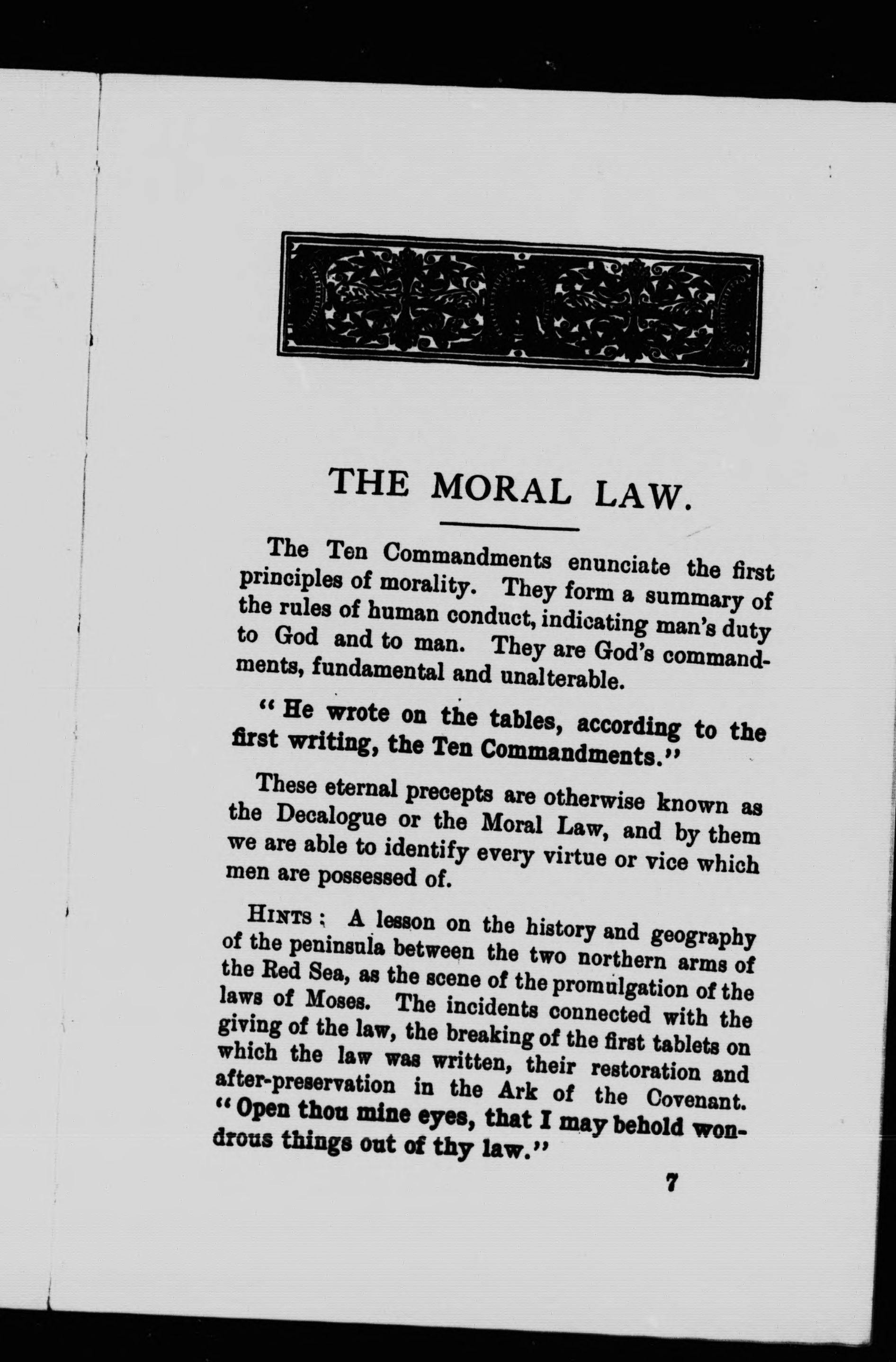Moral drill for the school room : being a short treatise on elementary ethics taking the Ten commandments as the fundamental principles : a manual with illustrative charts