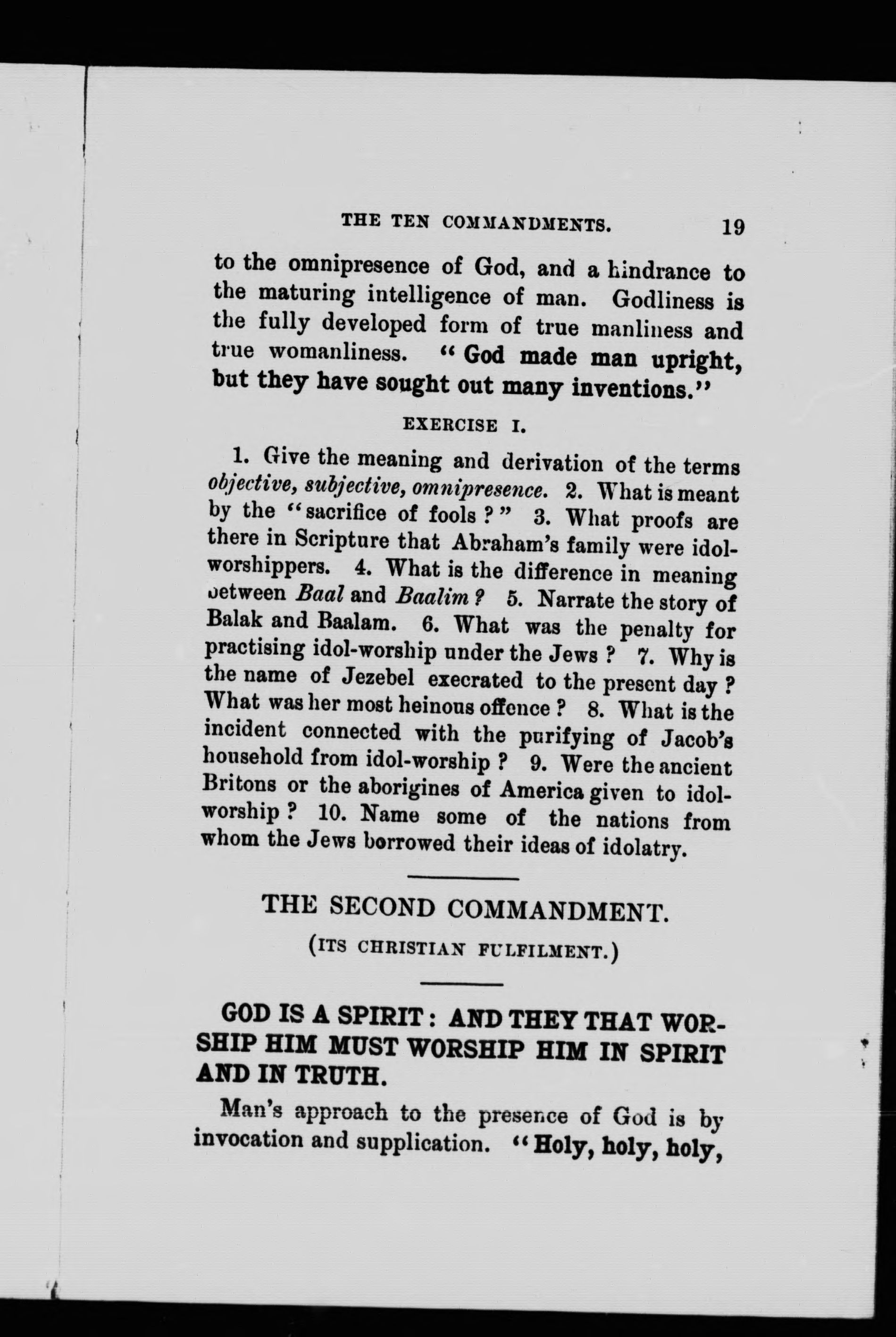 - Moral drill for the school room : being a short treatise on elementary ethics taking the Ten commandments as the fundamental principles : a manual with illustrative charts