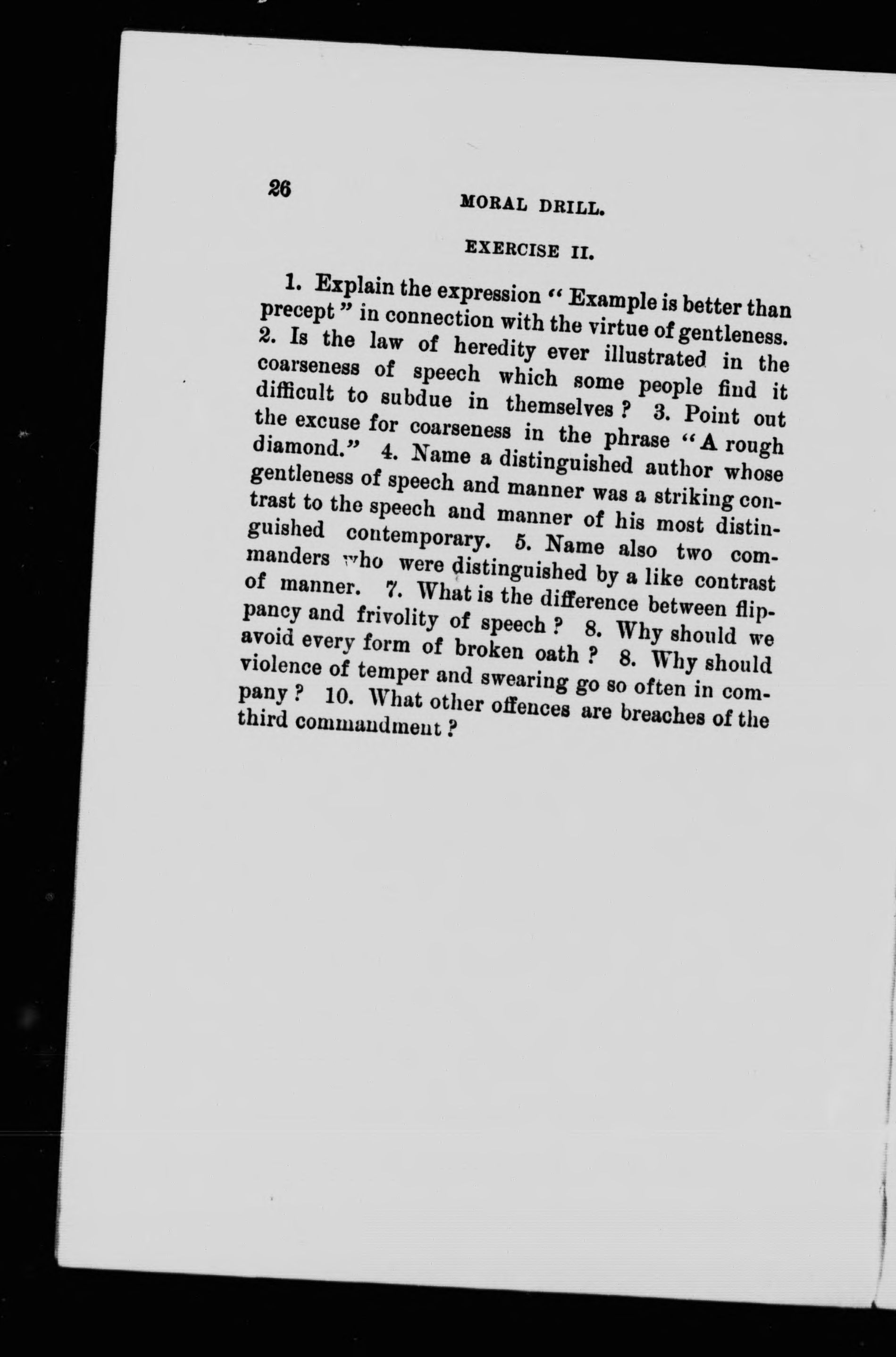 - Moral drill for the school room : being a short treatise on elementary ethics taking the Ten commandments as the fundamental principles : a manual with illustrative charts