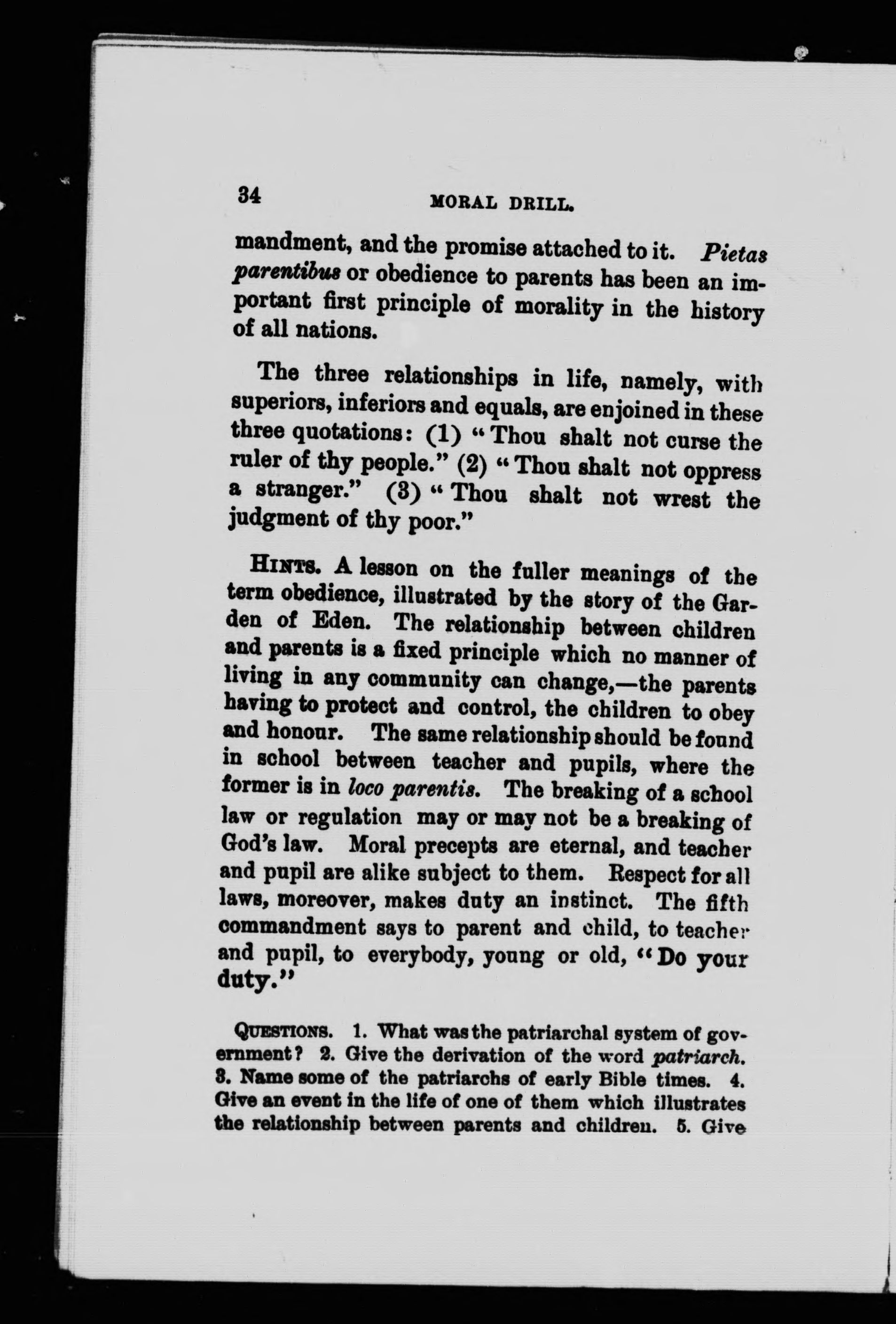 Moral drill for the school room : being a short treatise on elementary ethics taking the Ten commandments as the fundamental principles : a manual with illustrative charts