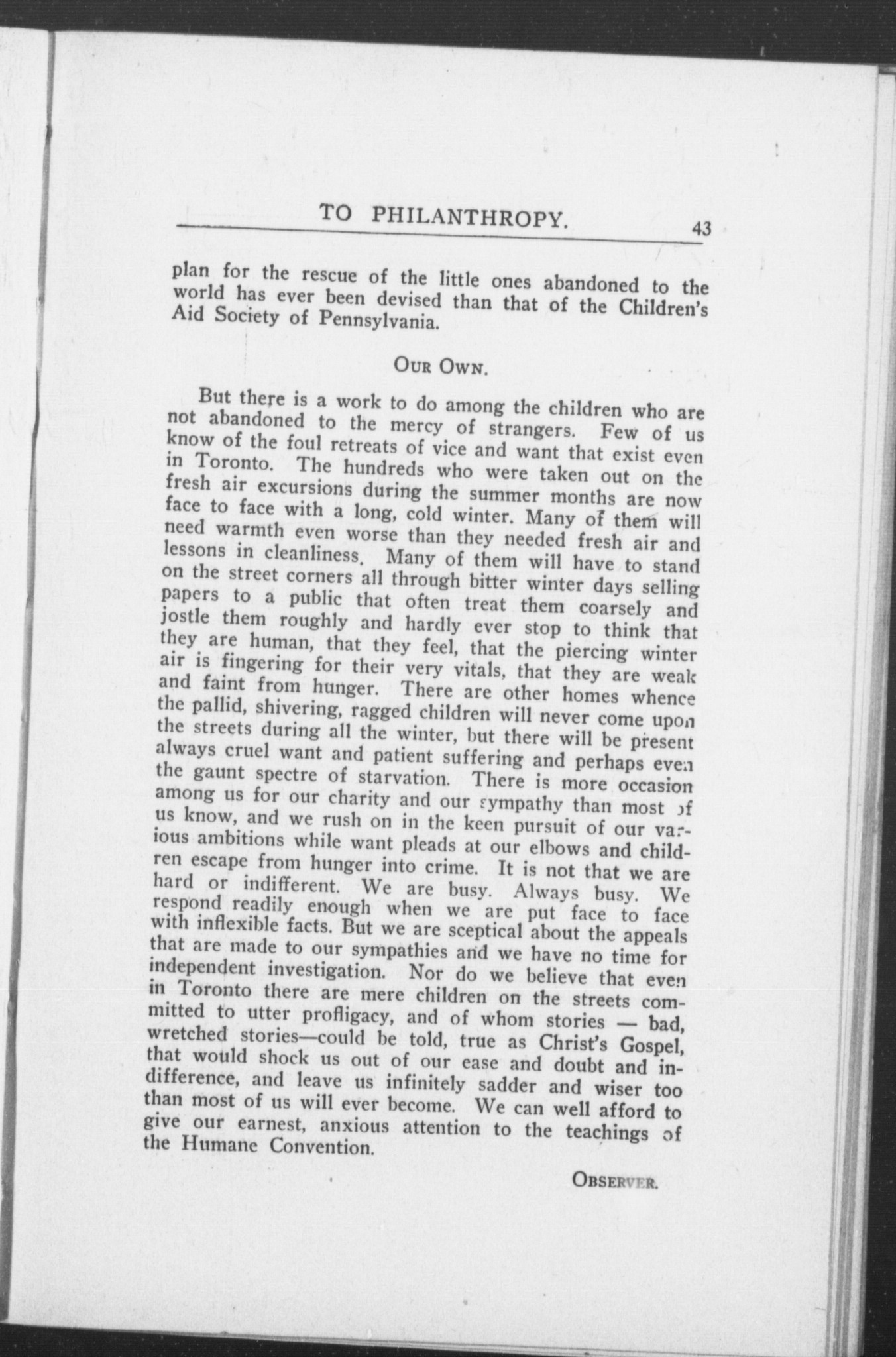 Early history of the Humane and Children's Aid Movement in Ontario, 1886-1893.