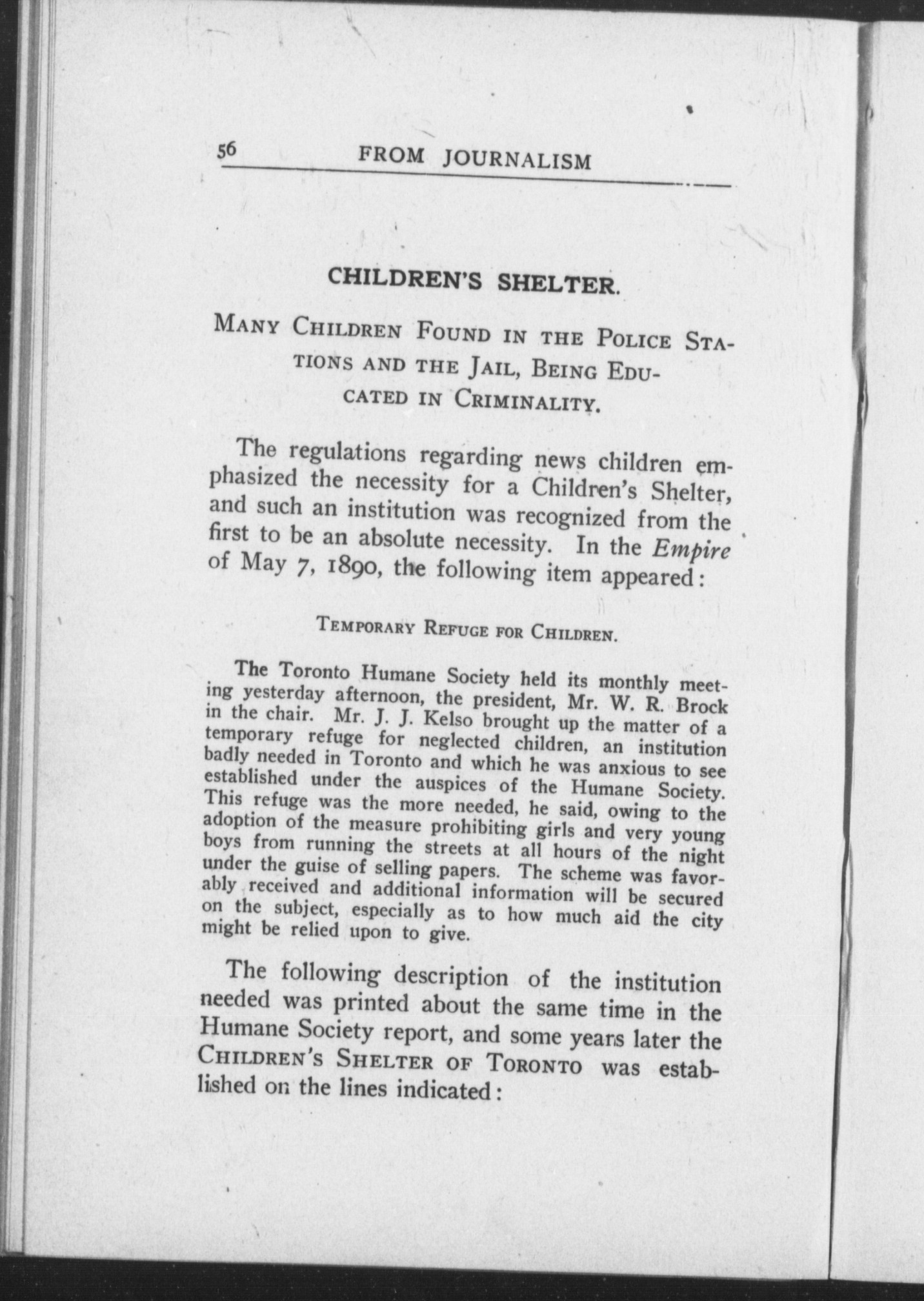 Cover title: Protection of Children : Early History of the Humane and Children's Aid Movement in Ontario.