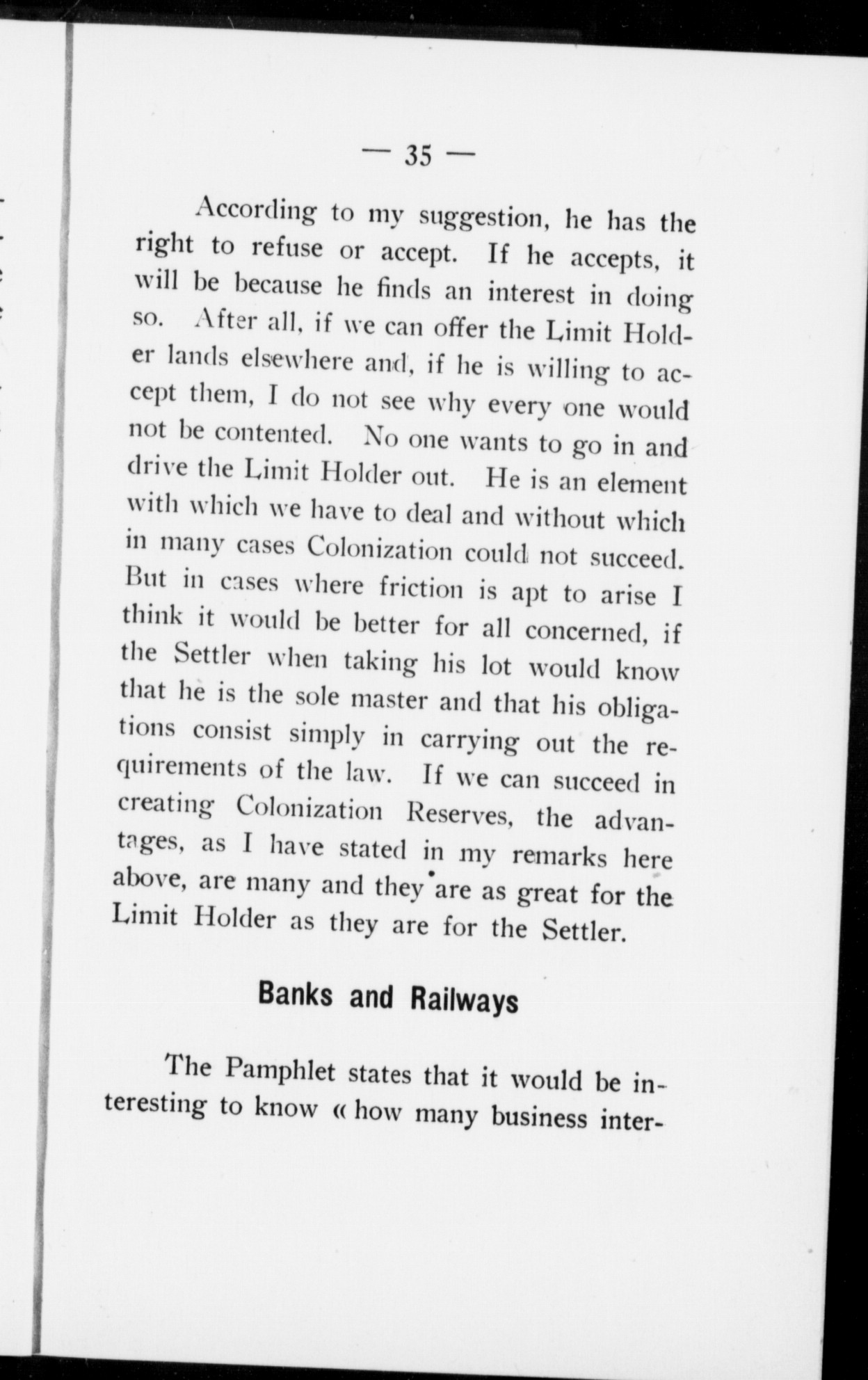 The position of the settler in the province of Quebec