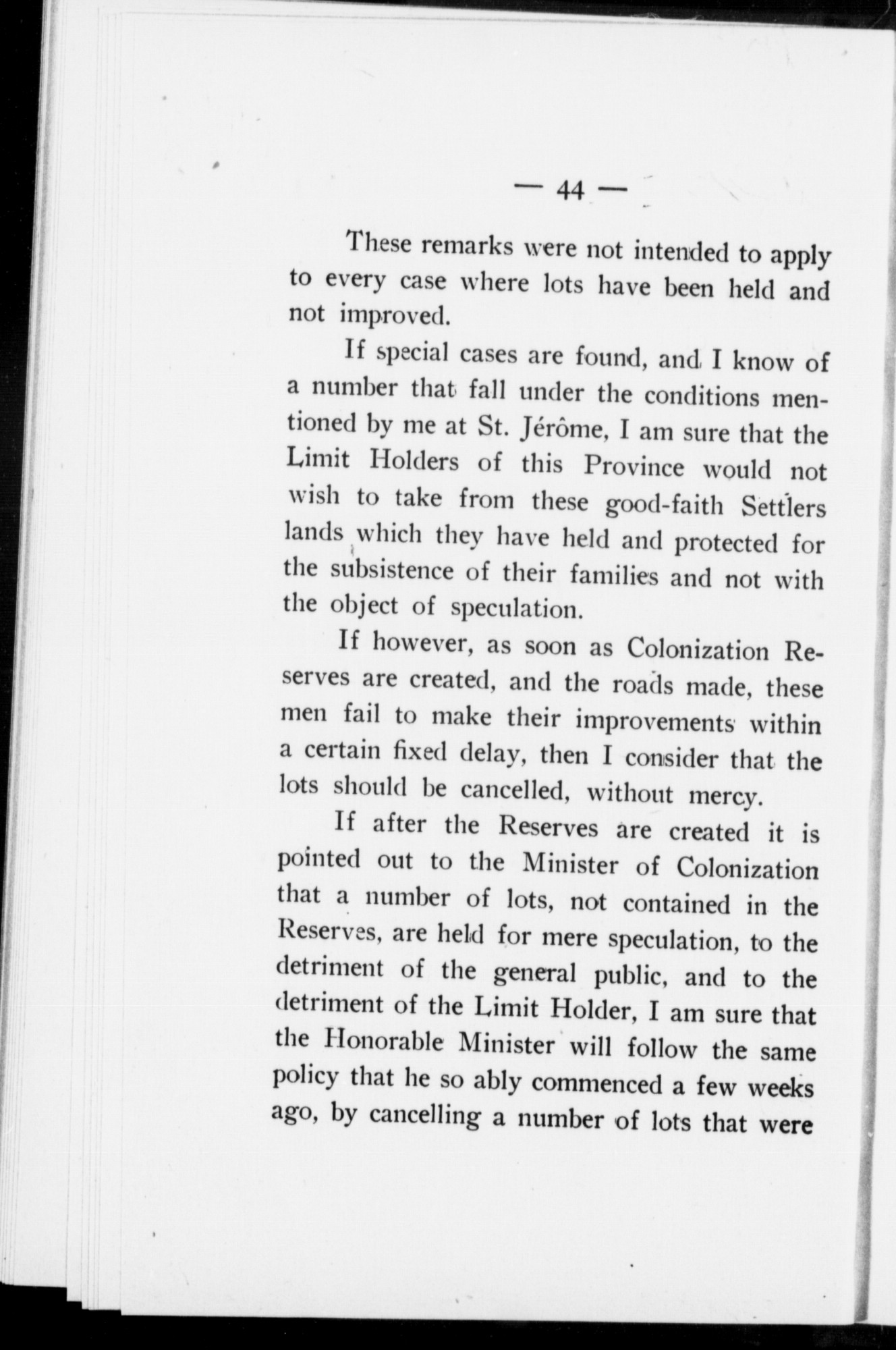 The position of the settler in the province of Quebec