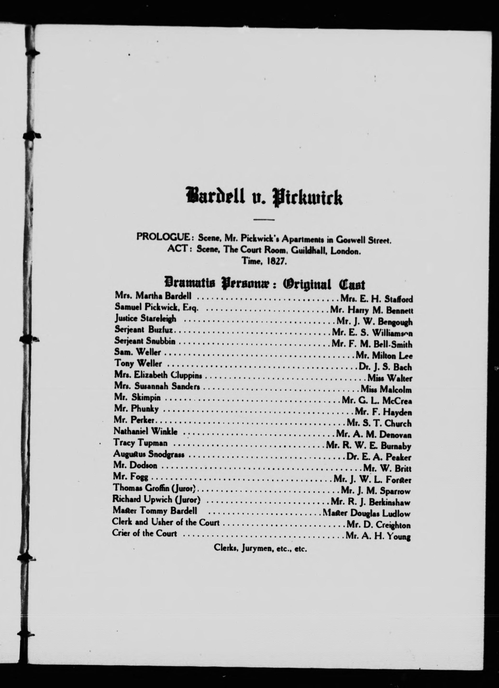 "As presented by the Dickens Fellowship Company of Players at Toronto, May 9, 10, 15, and 28, 1907"