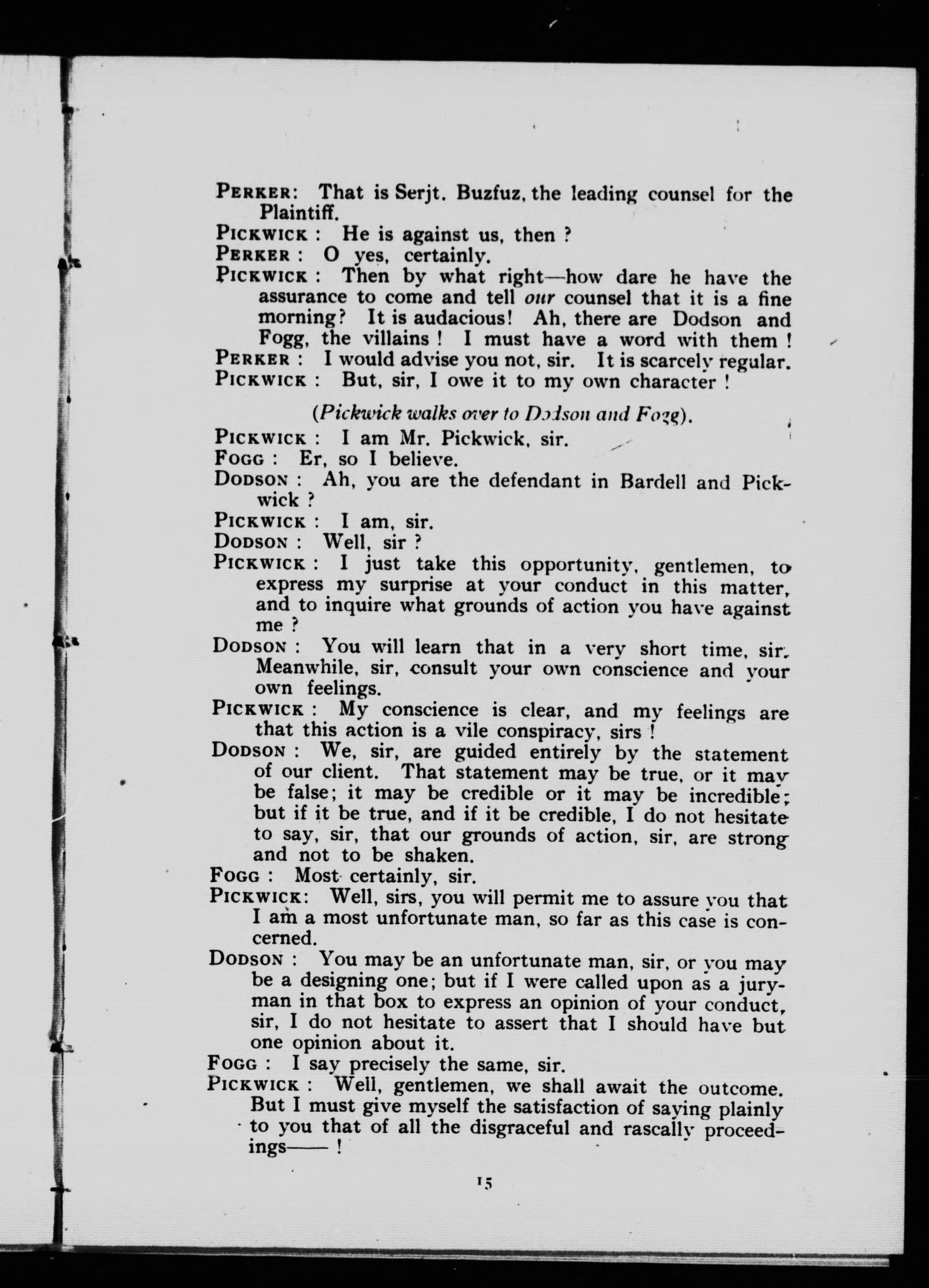 - The breach of promise trial : Bardell v. Pickwick : adapted from "The Pickwick papers" of Charles Dickens