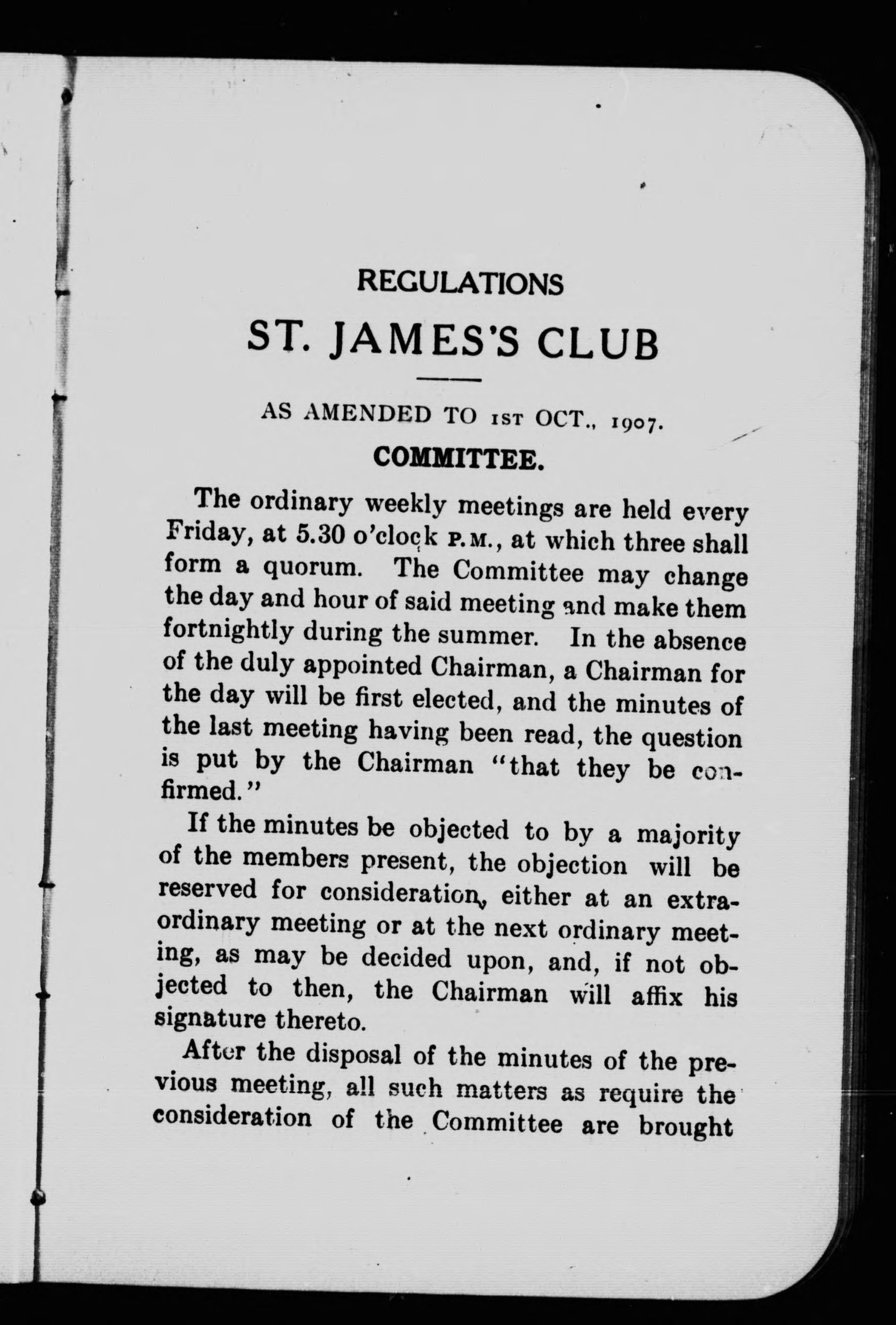 Act of incorporation and amendments, constitution, regulations and list of members of the St. James's Club of Montreal : adopted May 21st, 1857, with additions and amendments to 1st May, 1907.