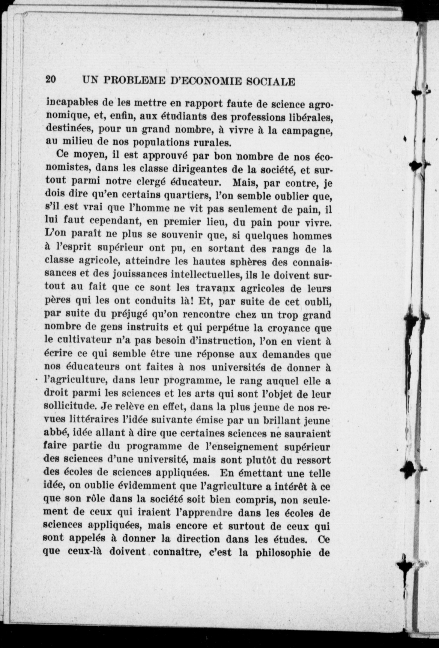 - Un probléme d'économie sociale : l'enseignement agricole