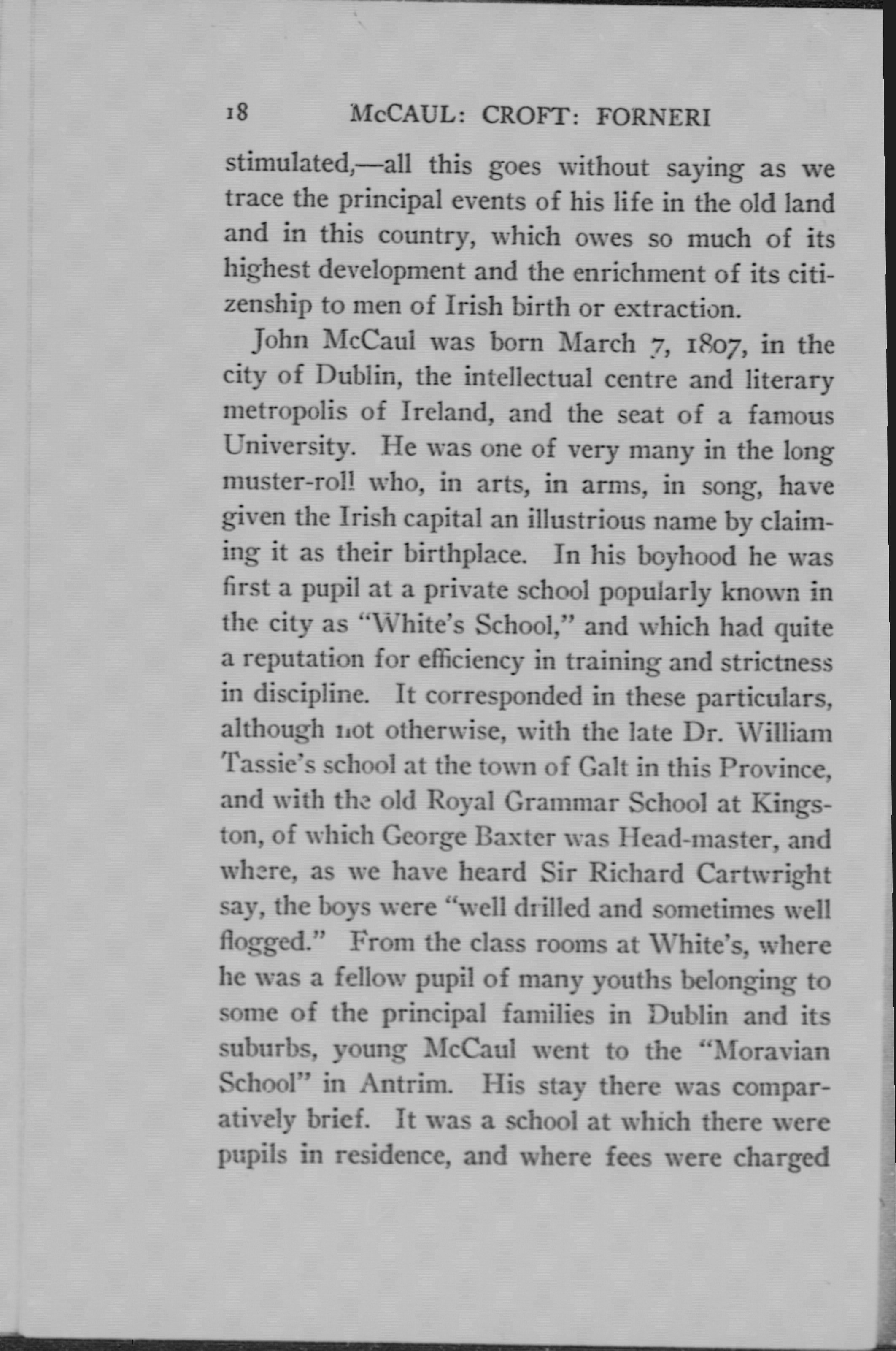 McCaul : Croft : Forneri : personalities of early university days