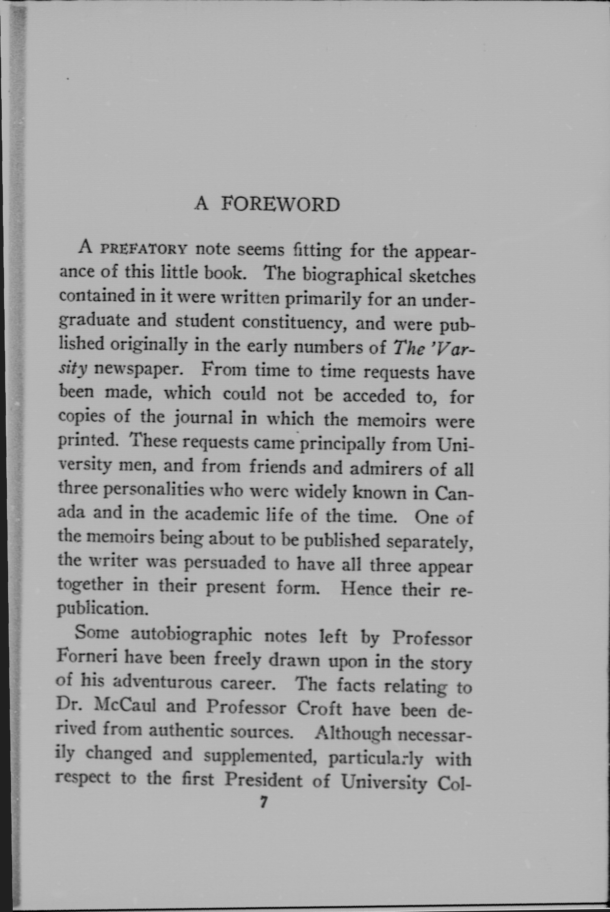 Published originally in the early numbers of the Varsity newspaper--Foreword.